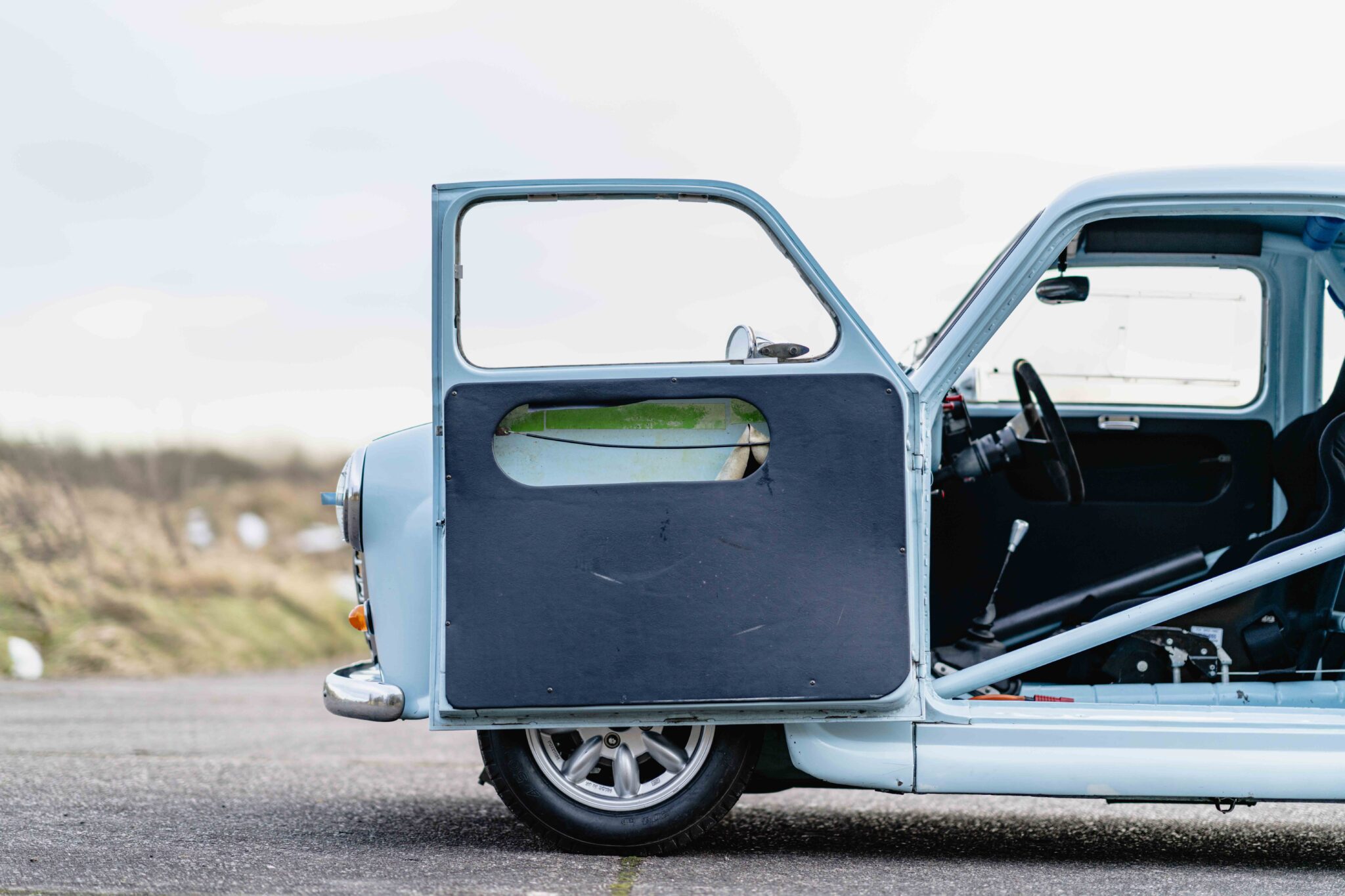 Built by specialists, using a fully dipped and bare shell, de-seamed at the rear, and fitted with a Custom cage. Powered by a demon full spec 1293cc Nick Swift engine with a straight cut gearbox. The impressive specification also includes a lowered engine, adjustable suspension, MG Midget axle and Minilite wheels with Dunlop tyres.