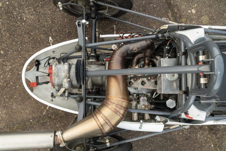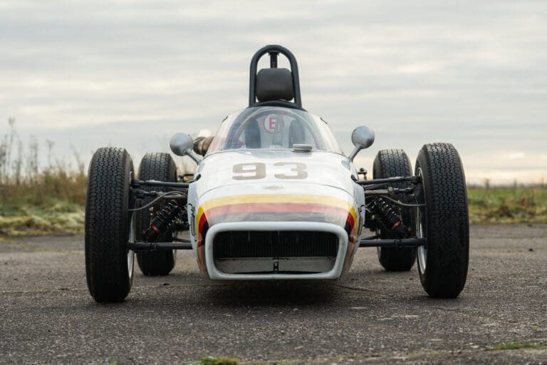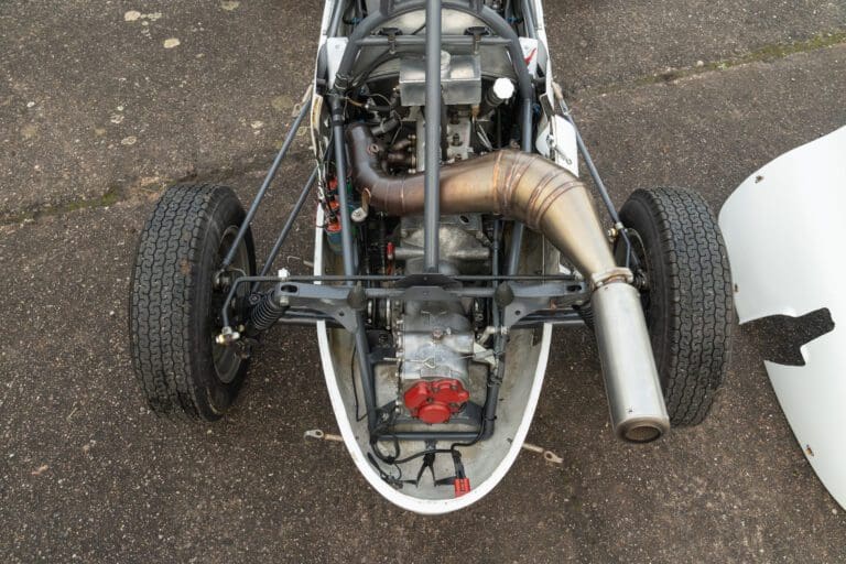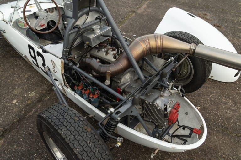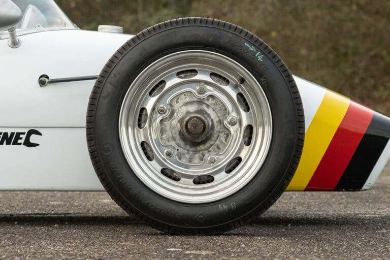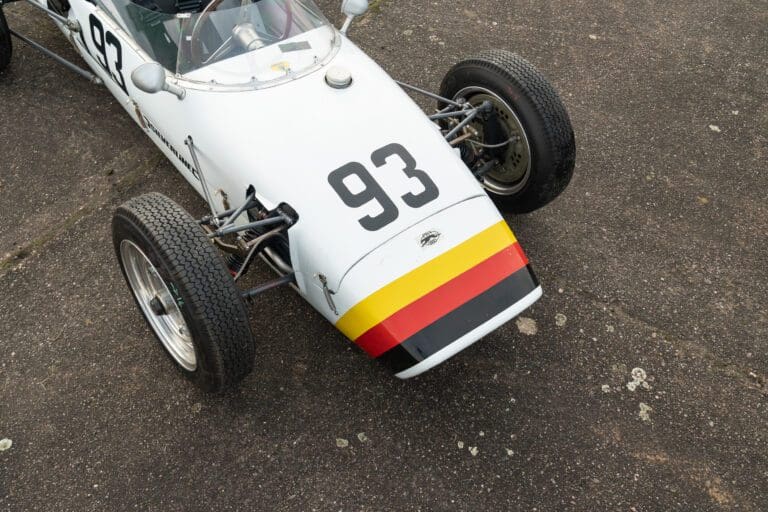 Built for the 1000cc 360kg Formula Junior class, the PBA is a very short wheelbase car. In 1961 it was entered by the famous Scuderia Colonia (which had previously supported local hero Wolfgang von Trips) and in total it ran for 3 years in German Formula Junior, with little success.The PBA then spent some time in the late 1960s/early 1970s as an advert on the roof of a repair shop in Hamburg. When it was recovered the car was found to be in poor condition. It was later sold at auction and went to the USA where it was cosmetically restored and returned to the circuit. The car proved troublesome due to extreme tuning of the engine by the US owners and it was advertised for sale. Rudolf Ernst decided to rescue this piece of German motor sport history and brought it back to Europe.