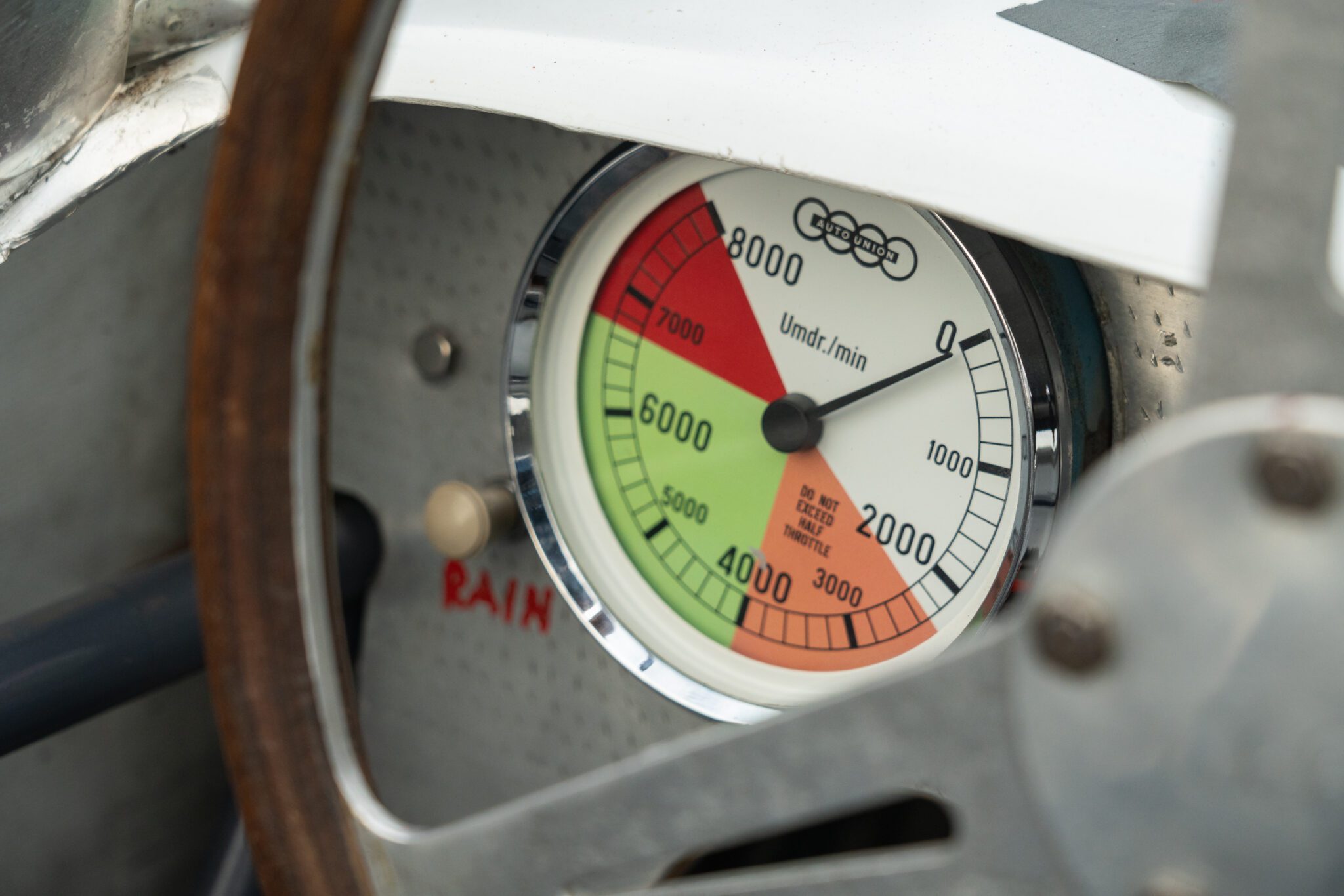 The PBA II features a DKW engine, gearbox, steering rack and track rods, brakes from very early VW Transporter T1, Porsche 356 wheels, modified DKW/Goggomobil combination driveshafts, bespoke hubs and uprights, motorcycle springs and dampers, a twin wishbone front suspension and low pivot-point swing axle to the rear. Interestingly the dashboard is stressed and made of alloy and wood laminate.
