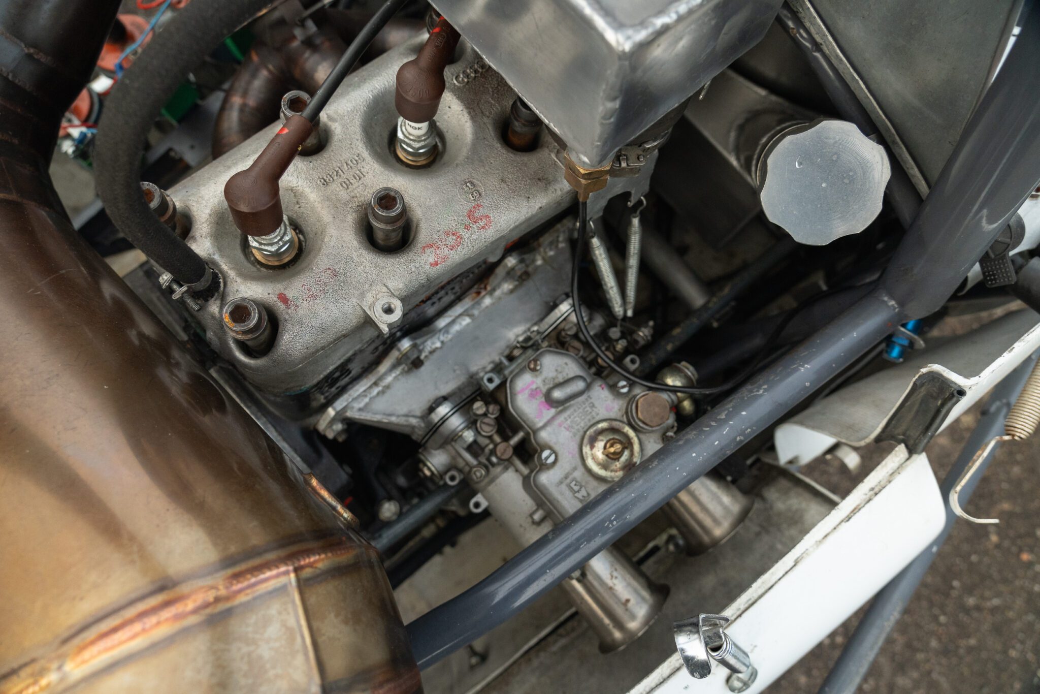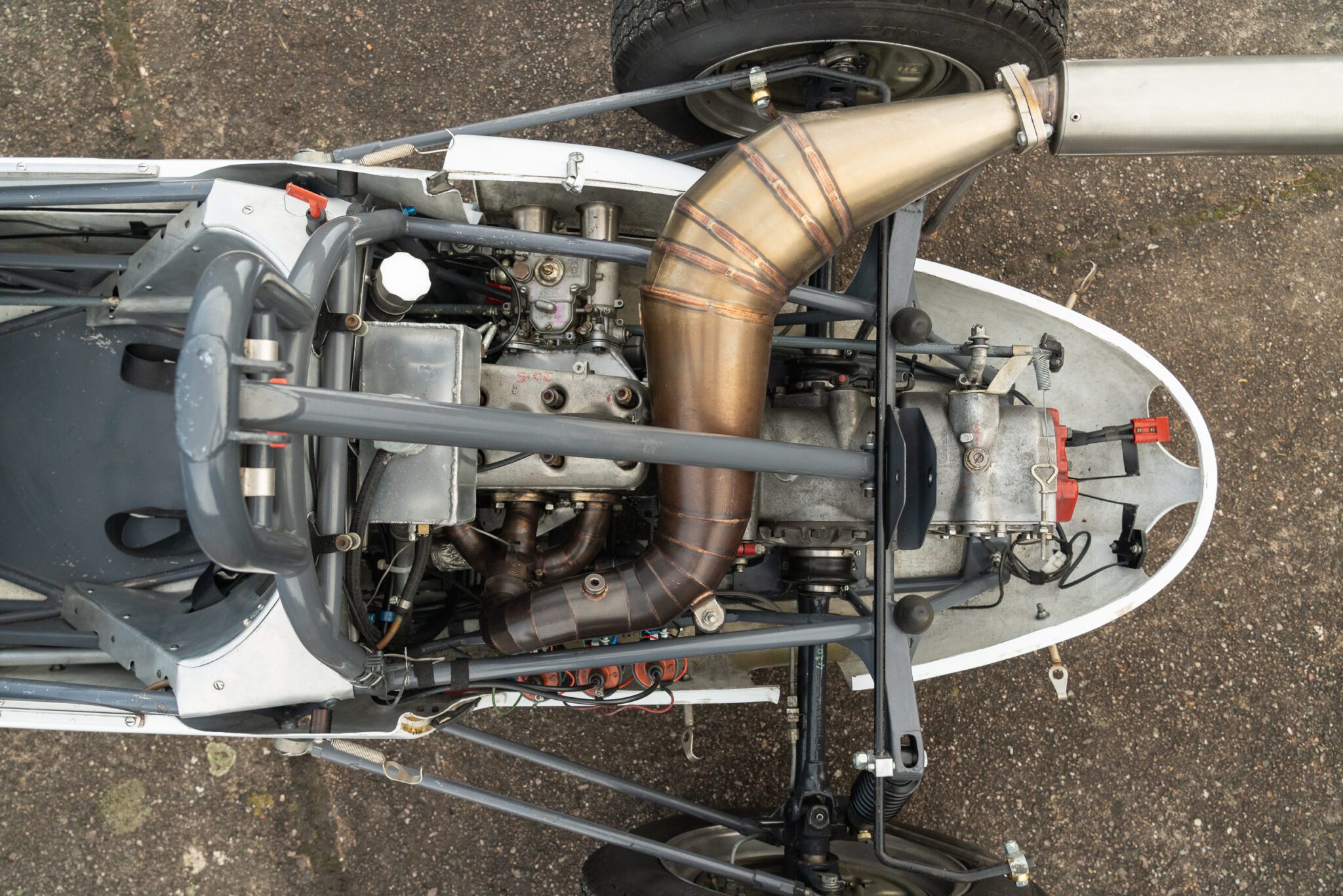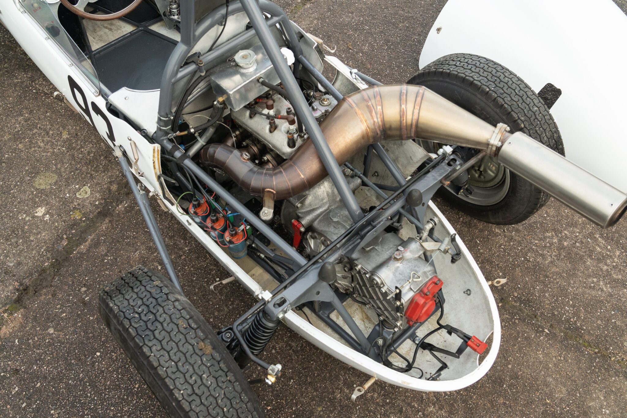 Built for the 1000cc 360kg Formula Junior class, the PBA is a very short wheelbase car. In 1961 it was entered by the famous Scuderia Colonia (which had previously supported local hero Wolfgang von Trips) and in total it ran for 3 years in German Formula Junior, with little success.The PBA then spent some time in the late 1960s/early 1970s as an advert on the roof of a repair shop in Hamburg. When it was recovered the car was found to be in poor condition. It was later sold at auction and went to the USA where it was cosmetically restored and returned to the circuit. The car proved troublesome due to extreme tuning of the engine by the US owners and it was advertised for sale. Rudolf Ernst decided to rescue this piece of German motor sport history and brought it back to Europe.