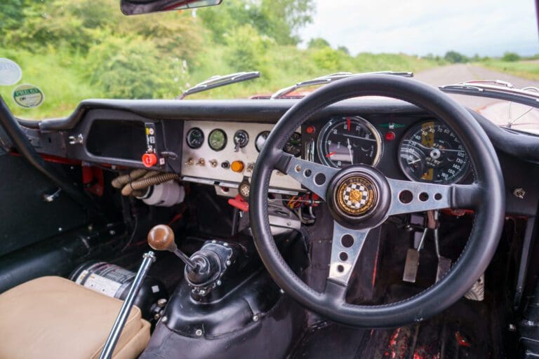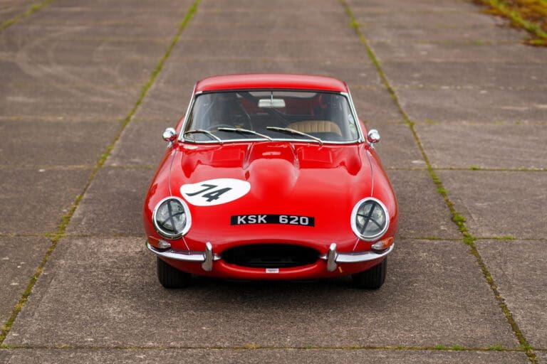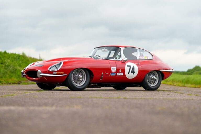 Chassis number 886956 is a 1962 Series 1 Fixed Head Coupe which began life as a US export, in LHD form. Returning to the UK in 1989 it was fully restored, converted to RHD and repainted in red before being UK registered as KSK 620 in 1991. Following further work at Classic Motor Cars (CMC) the E was bought by Chris Phillips who commissioned CMC to rebuild the car to FIA race specification for the Pre ’63 GT series. This included uprated suspension, brakes, gearbox and differential, fitment of a roll cage and an engine rebuild by Dave Whitehurst Racing, resulting in a healthy 306 bhp and 300 lb/ft. Following further preparation by RW Racing the car competed in the Pre ’63 GT series for several seasons.