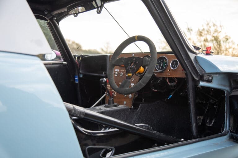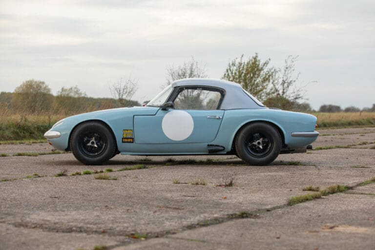 This road-going Lotus Elan S1 is registered LKE 126B and was built to full lightweight 26R ‘GTS’ specification in 1991 and raced successfully in both Hong Kong And Macau. The car later sold to Bobby Bell of Bell & Colvill fame, before passing into the hands of Steve Tandy / Nick Pancisi. It was purchased by our vendor in 2017 and now shares a stable with a pre-war Fraser Nash and Cooper Formula Junior. Developed over. number of years to be one of the most competitive out there, the car is offered with a current UK V5c road registration document, showing just 4 former keepers and has competed on the Tour Auto and other road events. ‘LKE 126B’ utilises a fully-gusseted 26R spec chassis, with strengtheners and a lightweight TTR body shell. The car rides on strengthened TTR hubs and diff shaft, with Magnesium knock-on 26R wheels, magnesium uprights, 26R spec discs etc. It also incorporates 26R specification wishbones with all solid bushes (trunnions and bushes replaced in April ’25) and a new custom wiring loom was fitted in 2018.