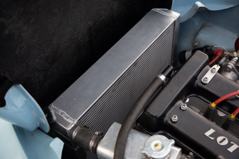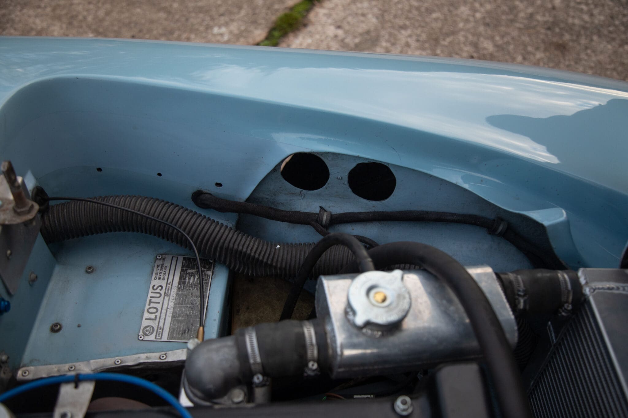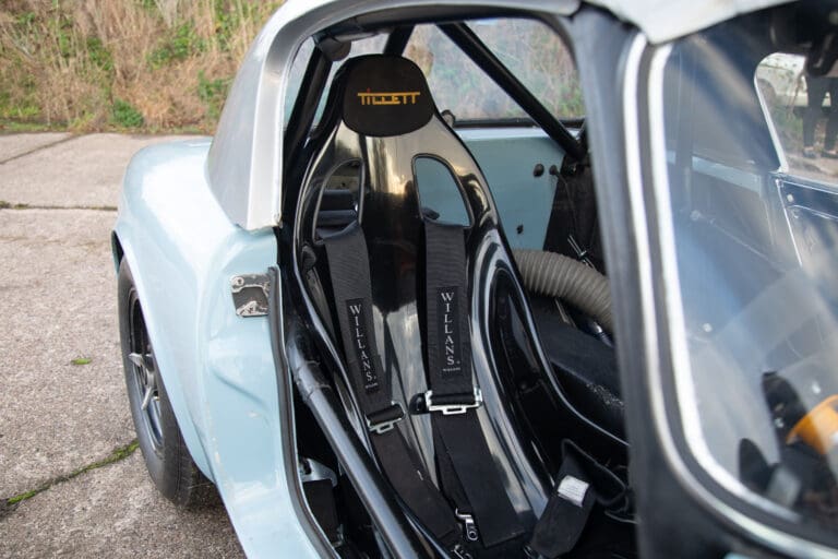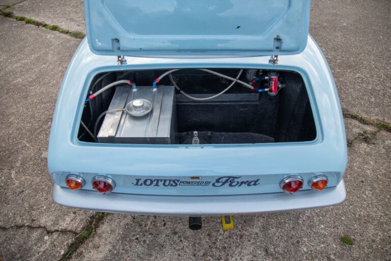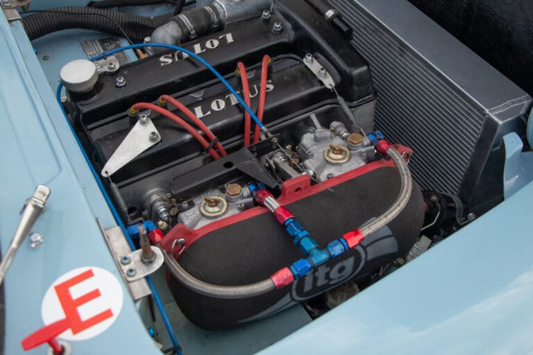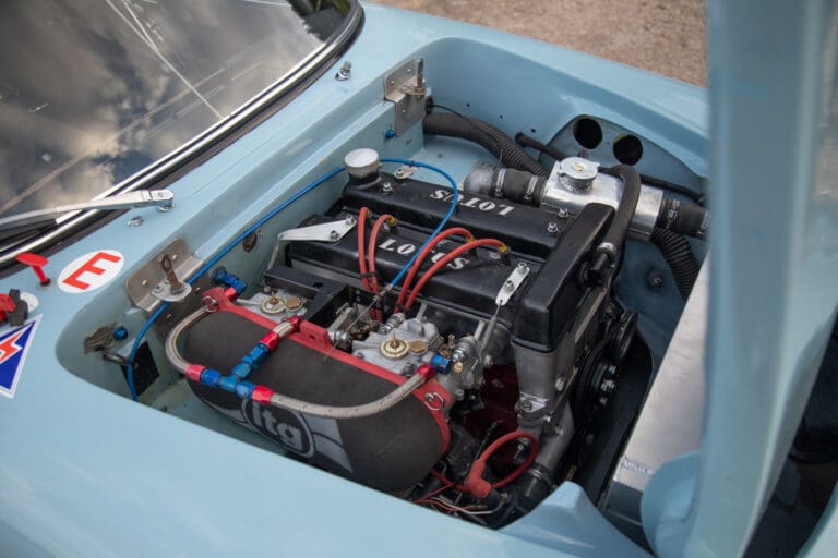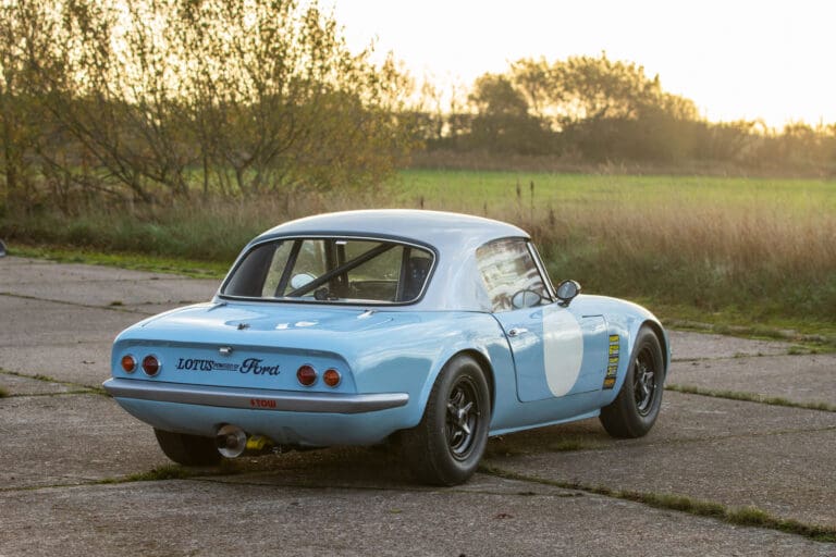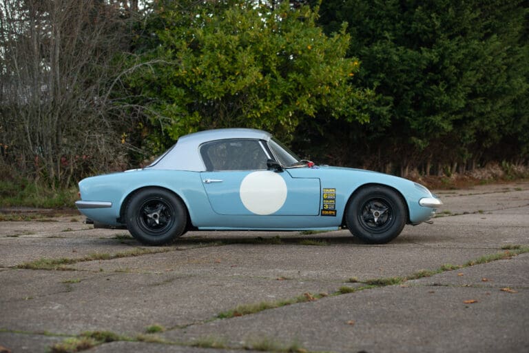 This road-going Lotus Elan S1 is registered LKE 126B and was built to full lightweight 26R ‘GTS’ specification in 1991 and raced successfully in both Hong Kong And Macau. The car later sold to Bobby Bell of Bell & Colvill fame, before passing into the hands of Steve Tandy / Nick Pancisi. It was purchased by our vendor in 2017 and now shares a stable with a pre-war Fraser Nash and Cooper Formula Junior. Developed over. number of years to be one of the most competitive out there, the car is offered with a current UK V5c road registration document, showing just 4 former keepers and has competed on the Tour Auto and other road events. ‘LKE 126B’ utilises a fully-gusseted 26R spec chassis, with strengtheners and a lightweight TTR body shell. The car rides on strengthened TTR hubs and diff shaft, with Magnesium knock-on 26R wheels, magnesium uprights, 26R spec discs etc. It also incorporates 26R specification wishbones with all solid bushes (trunnions and bushes replaced in April ’25) and a new custom wiring loom was fitted in 2018.