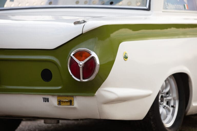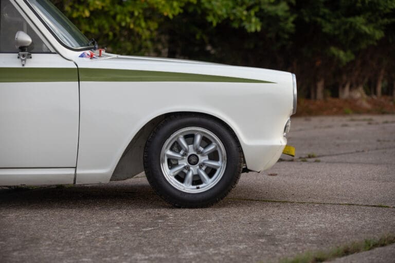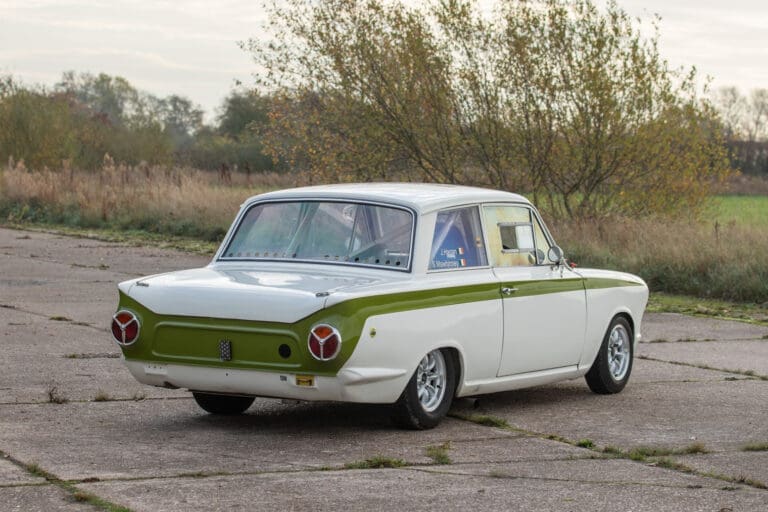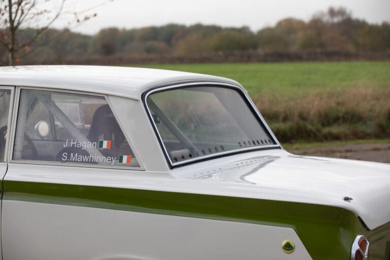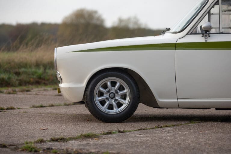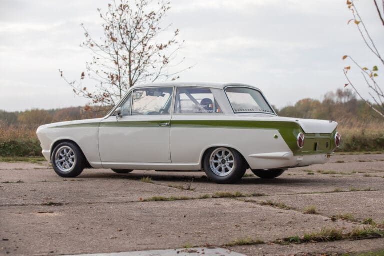 In 1961, Colin Chapman was commissioned by Harry Mundy to design a twin-cam version of the Ford Kent engine and its first appearance was at the Nürburgring in a Lotus 23 driven by Jim Clark. Soon after, the engine appeared in the Lotus Elan. During the engine’s development, Walter Hayes at Ford asked Colin Chapman to fit the twin-cam into 1,000 Ford saloons for ‘Group 2’ racing homologation. Chapman accepted the contract and the Type 28, or Lotus Cortina as it became known, was born. Whilst Ford supplied the two-door body shells and took care of the marketing, Lotus engineered the mechanical and cosmetic changes which included the 1,558cc engine along with the Elan’s close-ratio gearbox, front quarter bumpers and Lotus badges. They also made changes to the interior with a new centre console to accommodate the revised gear lever position, different seats and a later styled dashboard that incorporated a tachometer, odometer, oil pressure, water temperature and fuel gauges. A wood-rimmed steering wheel was the finishing touch. Once fully developed, Lotus Cortinas (as they quickly became known) absolutely shone on track, as they have done for the last 60 years.