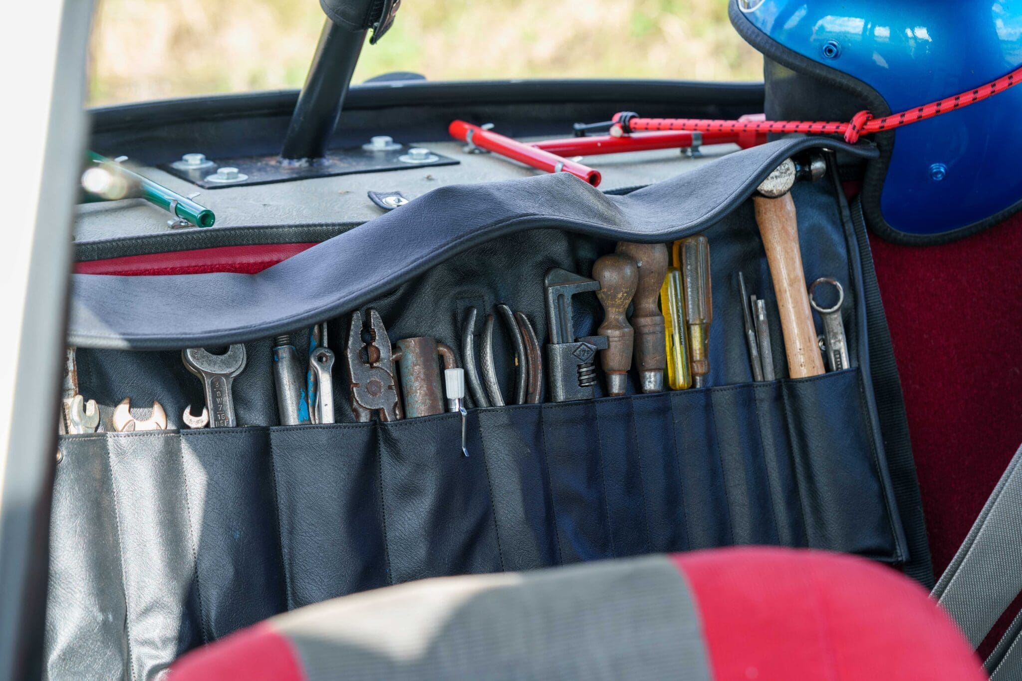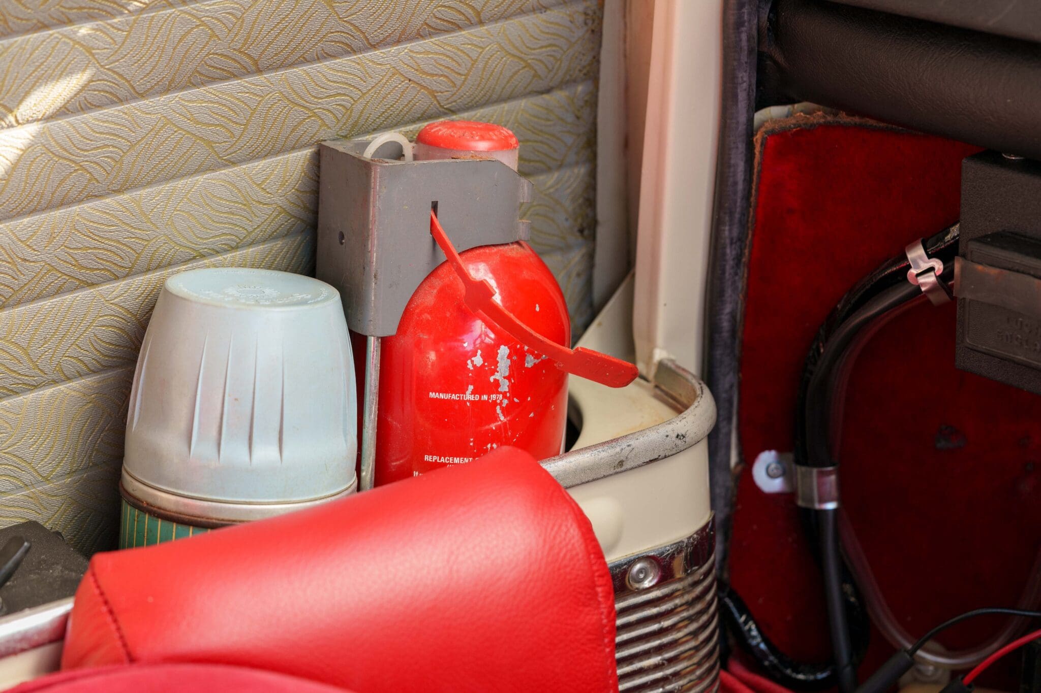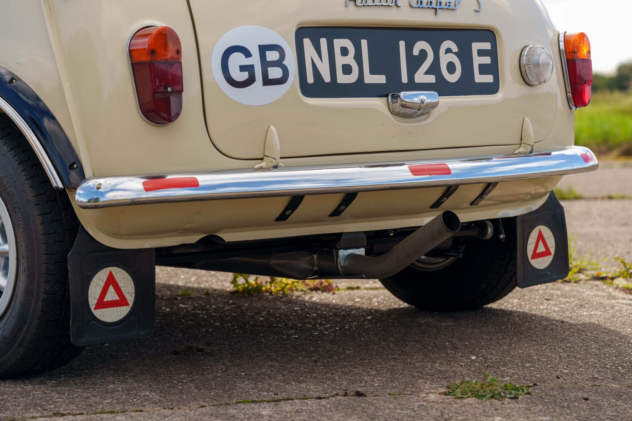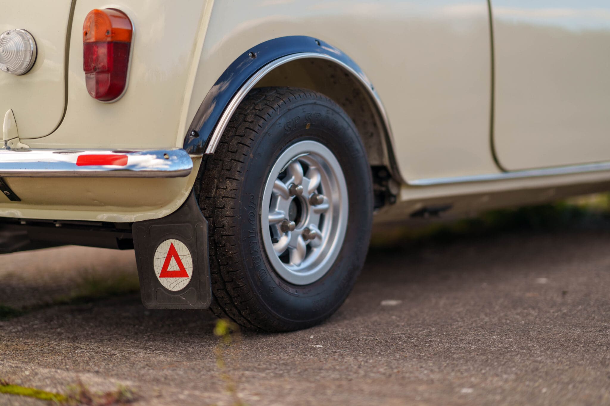 All of the “Works skidded” subframes were rebuilt and the hydrolastic interconnecting pipework remade to fit back inside the car, alongside battery, brake and wiring. This was done in the day to avoid any damage from under the car. The super rare Scandinavian sump guard is fitted (with inner collar). The car was re-wired using the original Lucas braided cables, mated to the fabulous works dashes. The car had all fuel pipes covered going through the back seat to the tanks, so that two studded tyres could be locked in place. The rear parcel shelf has the John Aley 3 point cage attached with two different wheel braces, one to fit Minilite wheels the other the standard mini nut. Ironically painted Red and Green (port and starboard perhaps???!). Spare nuts are carried within the car for steel wheel fitment. The boot area carries two “road” Minilite wheels, with the boot board having to be modified in the day to fit the 165 tyre. Both tank straps are modified. Within this area are the tools carried within a BMC tool bag, with the correct super-slim spanners. This compliments the tool roll that hangs from the bag shelf with further tools if they have problems. The super rare Elopress tyre/fire is located on the board. There is the correct modified jack that sits attached to the OSR pocket held in with a lovely strap for quick release. A later addition to the car is a works style roof rack with modified quick release clamps to ease those two Dunlop SP 44’s off! Seats – These are the correct type drivers and navigators’ seats with the strengthened brackets to hold them in place. They have the correct Irvin belts that can be modified for all driver sizes. (Current owner is 6’2”!)