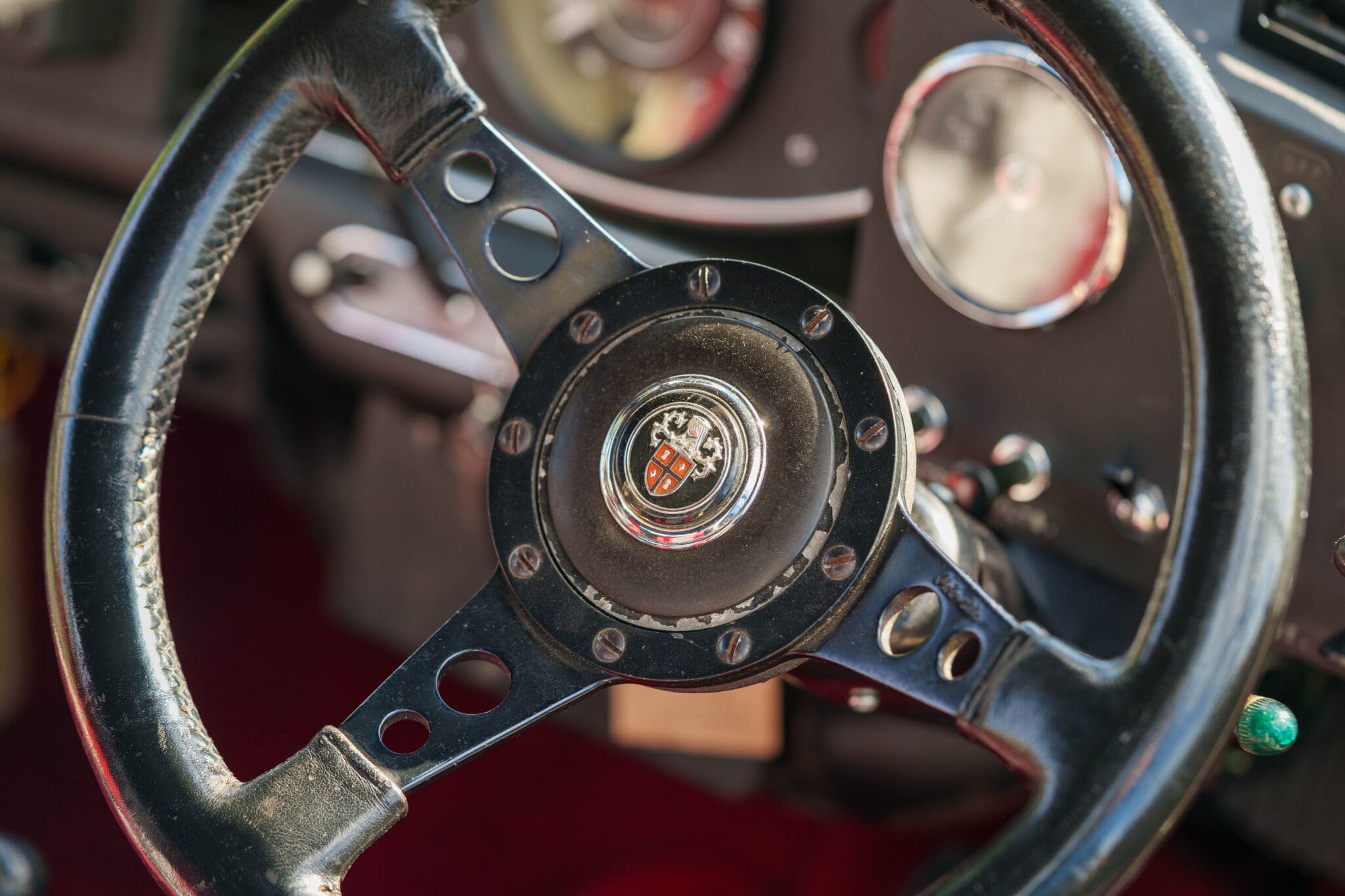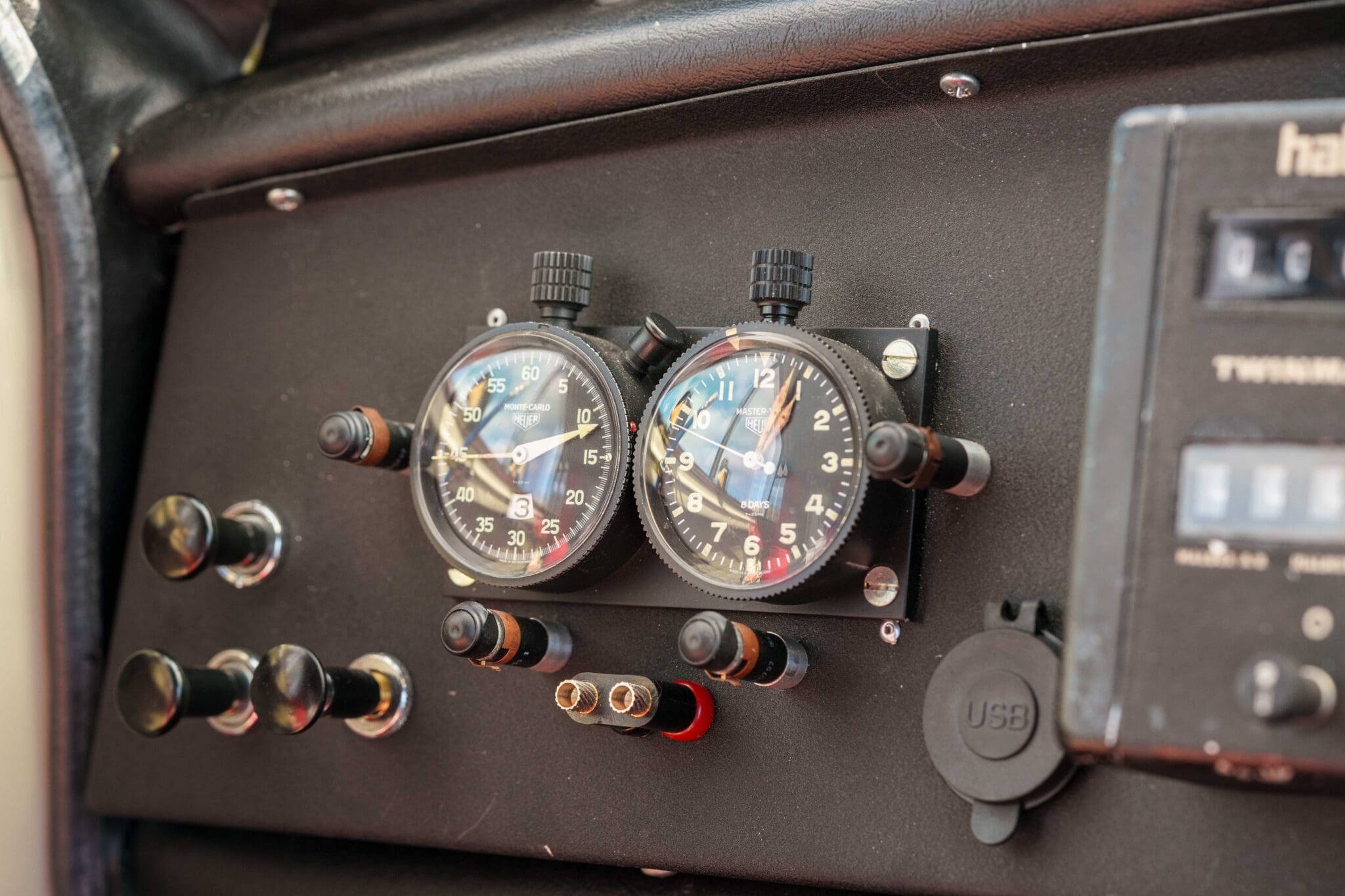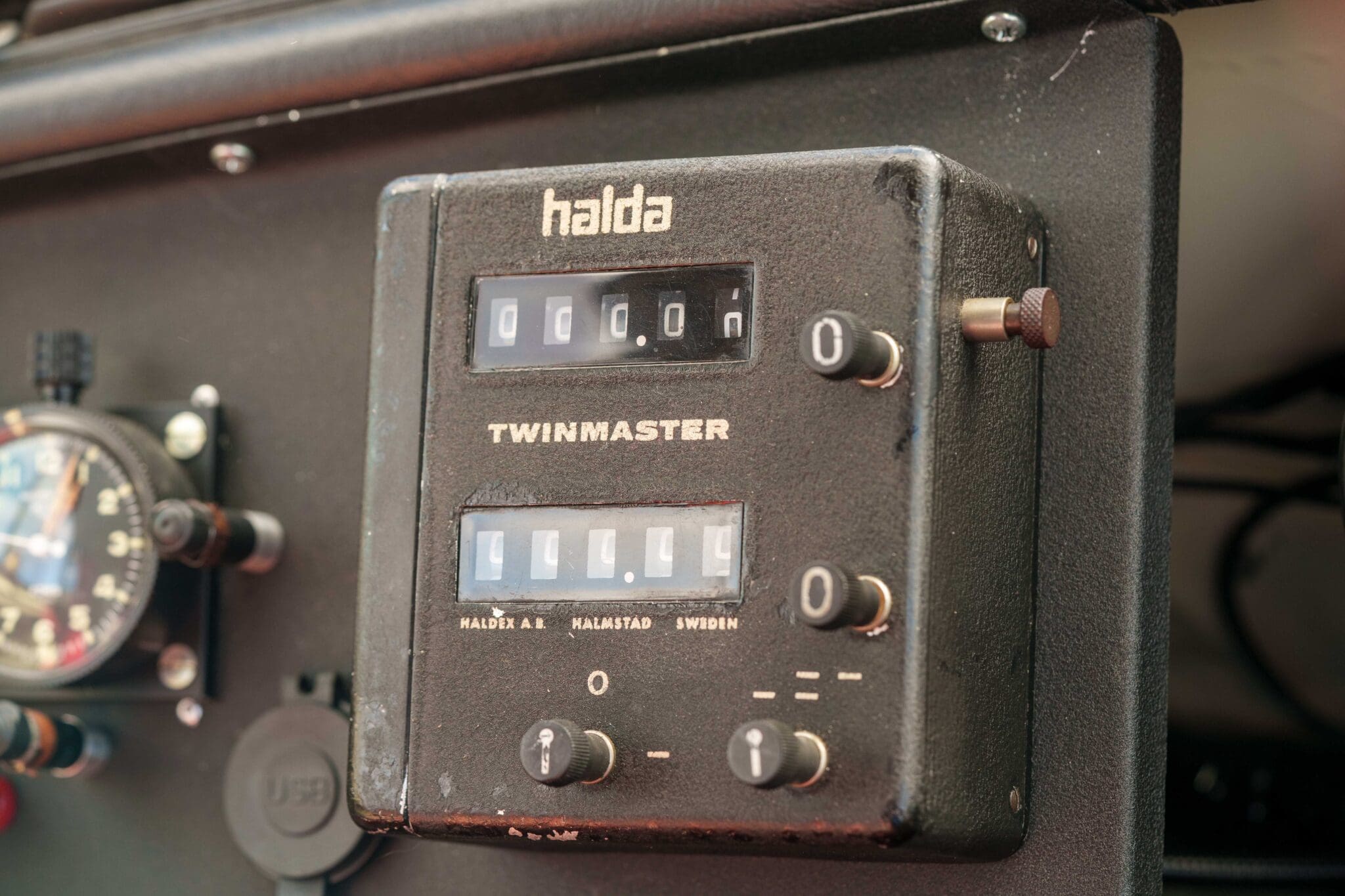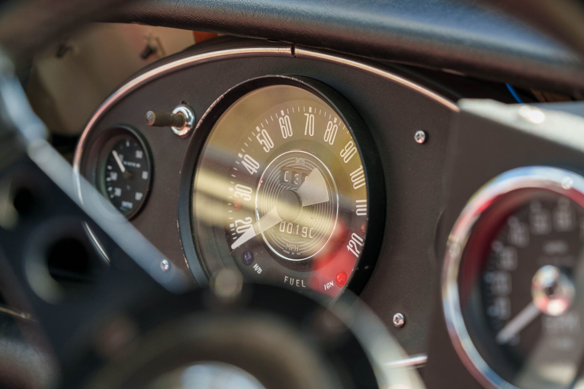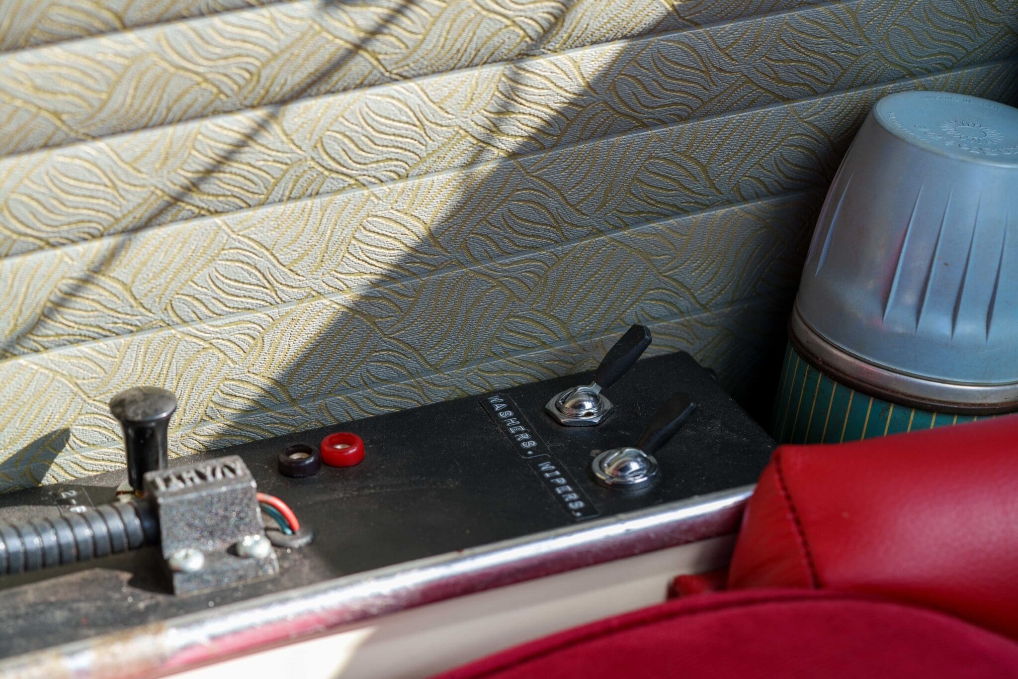 All of the “Works skidded” subframes were rebuilt and the hydrolastic interconnecting pipework remade to fit back inside the car, alongside battery, brake and wiring. This was done in the day to avoid any damage from under the car. The super rare Scandinavian sump guard is fitted (with inner collar). The car was re-wired using the original Lucas braided cables, mated to the fabulous works dashes. The car had all fuel pipes covered going through the back seat to the tanks, so that two studded tyres could be locked in place. The rear parcel shelf has the John Aley 3 point cage attached with two different wheel braces, one to fit Minilite wheels the other the standard mini nut. Ironically painted Red and Green (port and starboard perhaps???!). Spare nuts are carried within the car for steel wheel fitment. The boot area carries two “road” Minilite wheels, with the boot board having to be modified in the day to fit the 165 tyre. Both tank straps are modified. Within this area are the tools carried within a BMC tool bag, with the correct super-slim spanners. This compliments the tool roll that hangs from the bag shelf with further tools if they have problems. The super rare Elopress tyre/fire is located on the board. There is the correct modified jack that sits attached to the OSR pocket held in with a lovely strap for quick release. A later addition to the car is a works style roof rack with modified quick release clamps to ease those two Dunlop SP 44’s off! Seats – These are the correct type drivers and navigators’ seats with the strengthened brackets to hold them in place. They have the correct Irvin belts that can be modified for all driver sizes. (Current owner is 6’2”!)