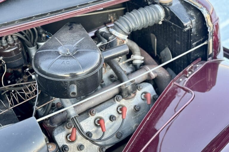 To achieve this, Mays once again turned to his trusted engineering partner, Peter Berthon, whose work on ERA and later BRM would cement his reputation as one of Britain’s most gifted automotive designers. The pair selected the Standard Motor Company’s V8 as the foundation of the project. Effectively two Standard Ten blocks were joined on a common crankcase, the 2686cc litre V8 featured a robust three-bearing crankshaft, coil ignition, and light-alloy cylinder heads. In period, the engine produced approximately 85 bhp, with tuned versions capable of exceeding 100 mph—exceptional figures for a British road car of the late 1930s. Aware that Standard’s production chassis was ill-suited to such performance, Berthon undertook a comprehensive redesign and started from scratch. The resulting bespoke frame utilised deep box-section side members and a heavily reinforced cruciform bracing, providing strength and rigidity well beyond contemporary norms. Suspension comprised independent front suspension via a transverse leaf spring, a live rear axle, front and rear anti-roll bars, and four-wheel drum brakes, producing a chassis very much in the mould of ERA racing practice rather than conventional road car design. A total of five rolling chassis were built and extensively re-engineered, with production and marketing undertaken by Shelsley Motors Ltd., a new company formed specifically for the project. Sadly, the outbreak of World War II in 1939 brought development to a sudden halt, ending what might have become one of Britain’s most important sporting marques. Of the five completed cars, only two are known to survive today, making the Raymond Mays Special one of the rarest British pre-war performance cars in existence.