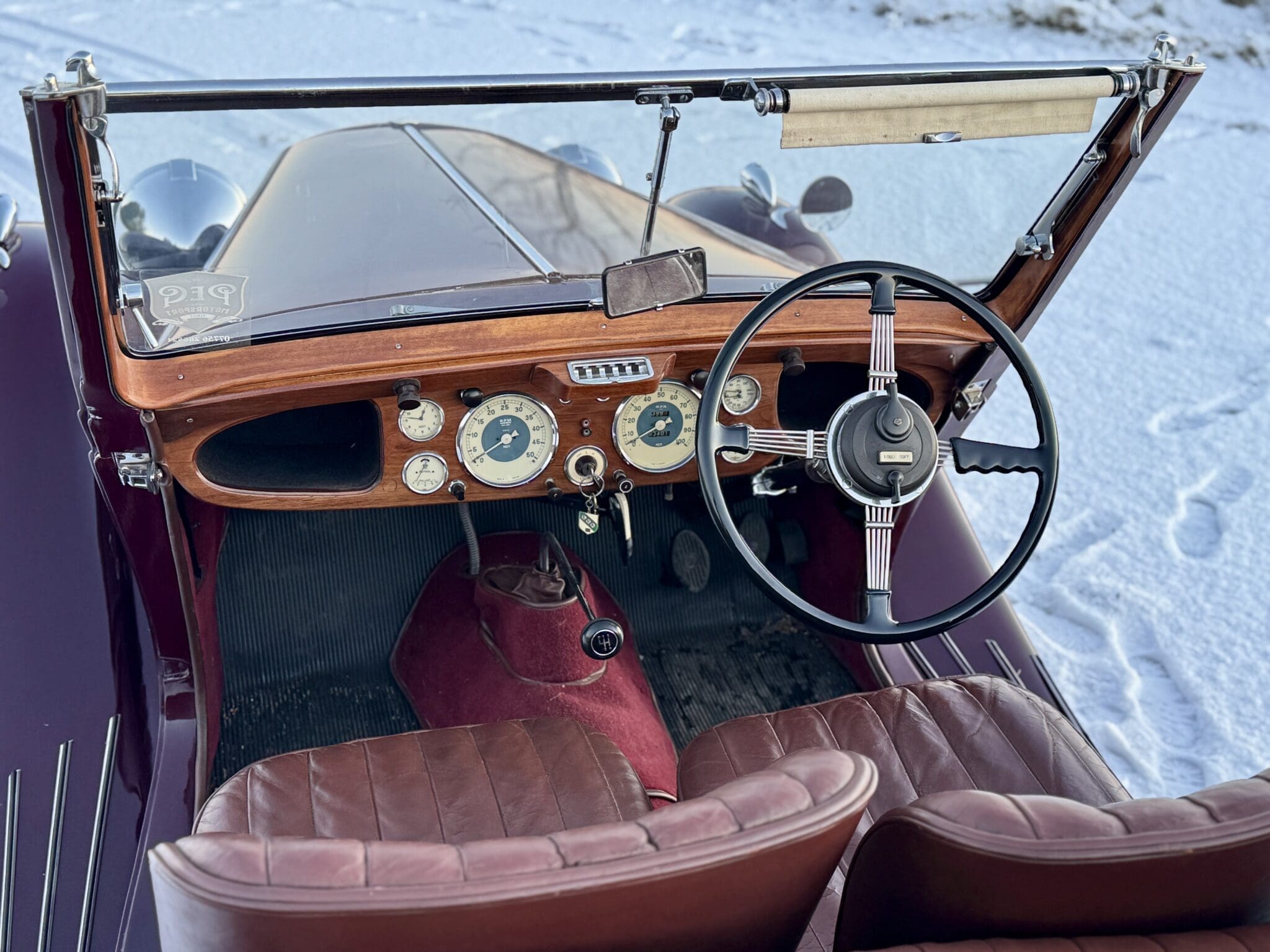 To achieve this, Mays once again turned to his trusted engineering partner, Peter Berthon, whose work on ERA and later BRM would cement his reputation as one of Britain’s most gifted automotive designers. The pair selected the Standard Motor Company’s V8 as the foundation of the project. Effectively two Standard Ten blocks were joined on a common crankcase, the 2686cc litre V8 featured a robust three-bearing crankshaft, coil ignition, and light-alloy cylinder heads. In period, the engine produced approximately 85 bhp, with tuned versions capable of exceeding 100 mph—exceptional figures for a British road car of the late 1930s. Aware that Standard’s production chassis was ill-suited to such performance, Berthon undertook a comprehensive redesign and started from scratch. The resulting bespoke frame utilised deep box-section side members and a heavily reinforced cruciform bracing, providing strength and rigidity well beyond contemporary norms. Suspension comprised independent front suspension via a transverse leaf spring, a live rear axle, front and rear anti-roll bars, and four-wheel drum brakes, producing a chassis very much in the mould of ERA racing practice rather than conventional road car design. A total of five rolling chassis were built and extensively re-engineered, with production and marketing undertaken by Shelsley Motors Ltd., a new company formed specifically for the project. Sadly, the outbreak of World War II in 1939 brought development to a sudden halt, ending what might have become one of Britain’s most important sporting marques. Of the five completed cars, only two are known to survive today, making the Raymond Mays Special one of the rarest British pre-war performance cars in existence.