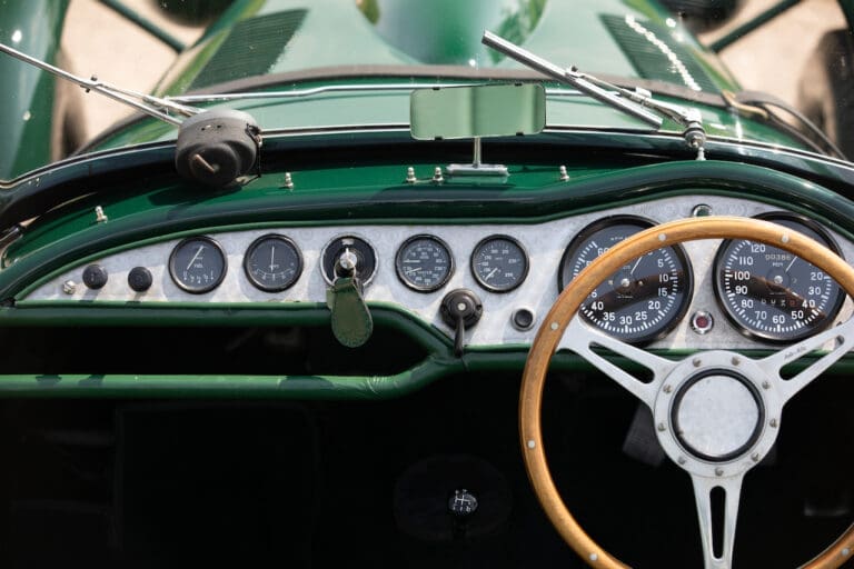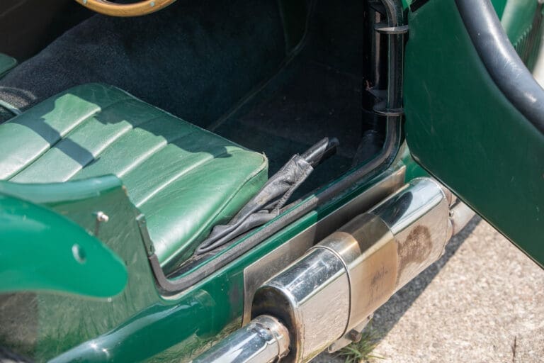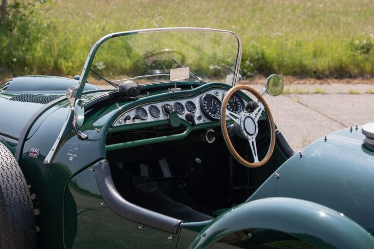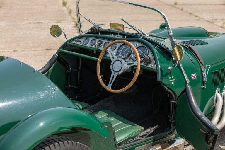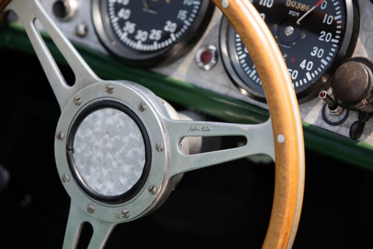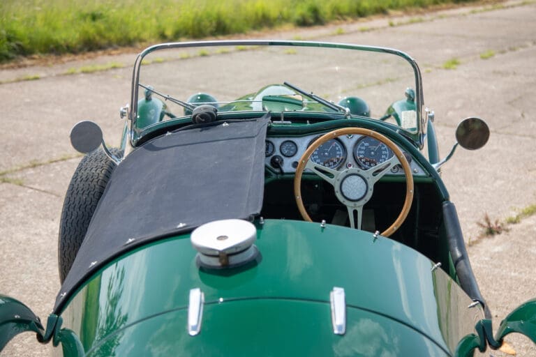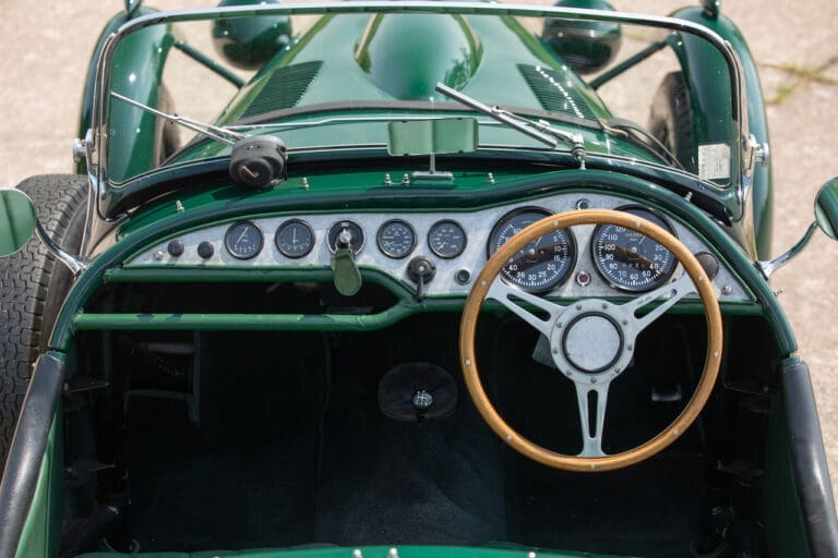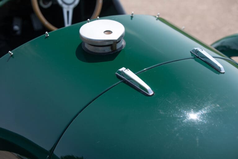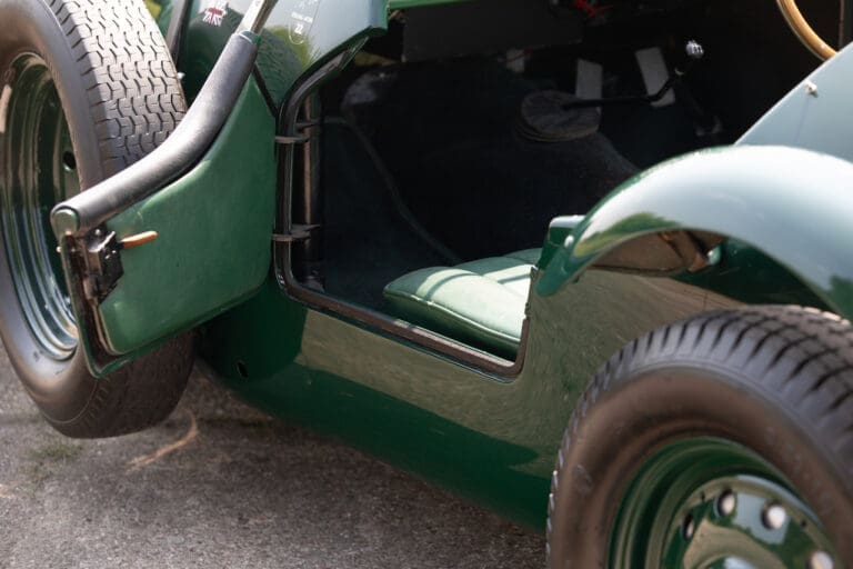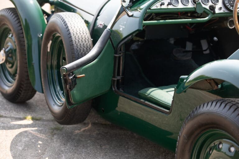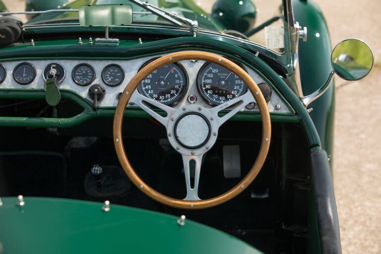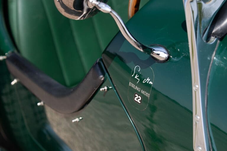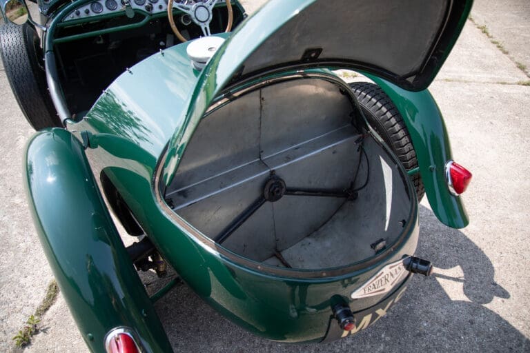 Running and driving faultlessly during our recent photography session, the Le Mans replica took part in an on-track demonstration to celebrate the life and success of Stirling Moss, during the 2006 Melbourne Grand Prix – his signature still sits above the driver’s door as a memento from that event. The car is correctly UK-registered as a 1952 Frazer Nash Le Mans (chassis number 421100), with proof of taxes and duties paid when imported by CARS UK. Sold with a large and comprehensive history file including technical literature, early correspondence with Werner Oswald himself as well as lots of receipts for maintenance and repairs. Offered with a tonneau cover and an original specification steering wheel – a smaller wood-rimmed Mota Lita sample is currently fitted for ease in entering and exiting the cockpit.