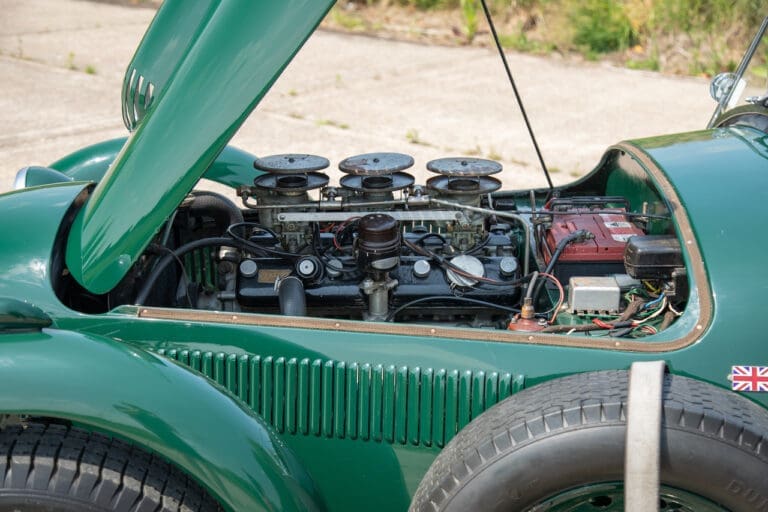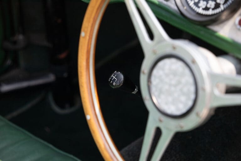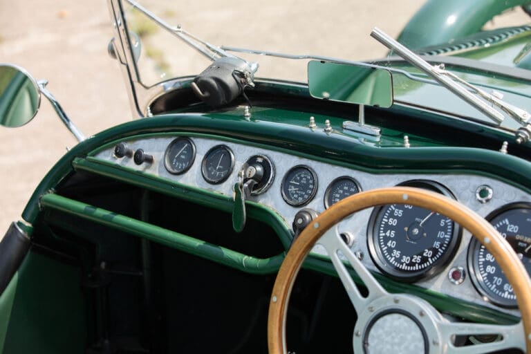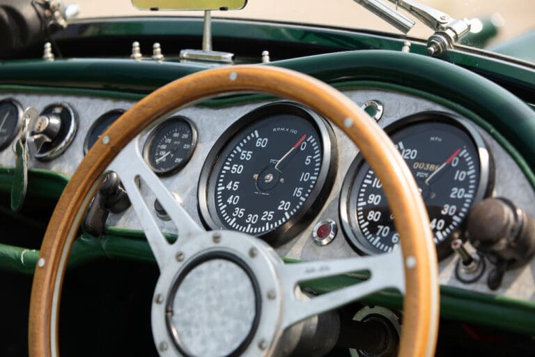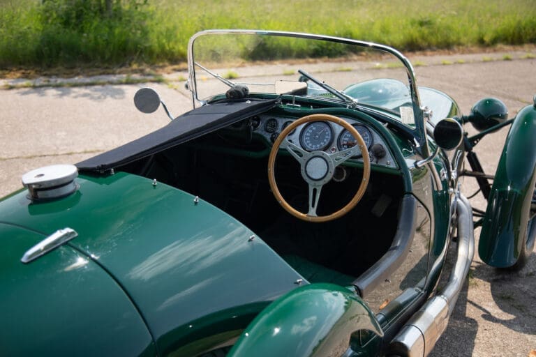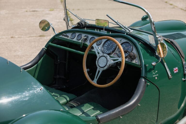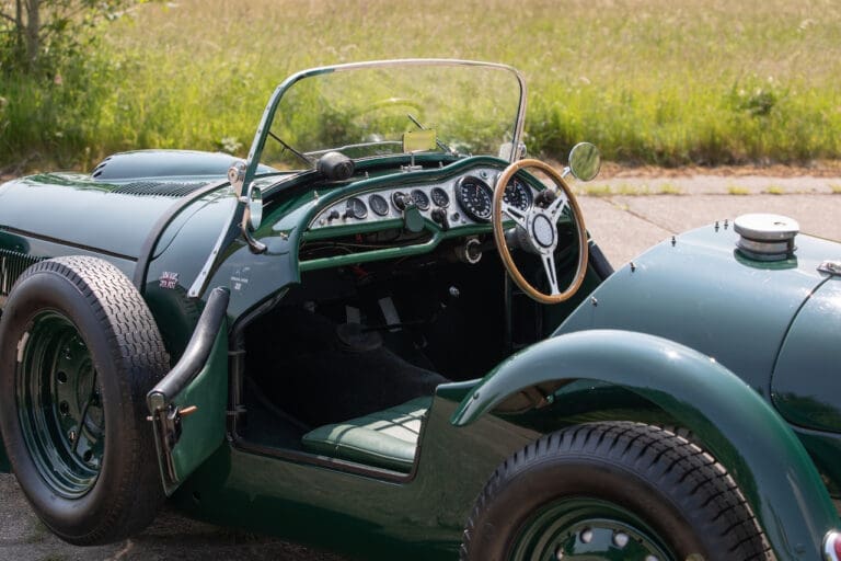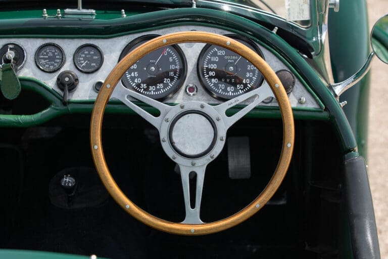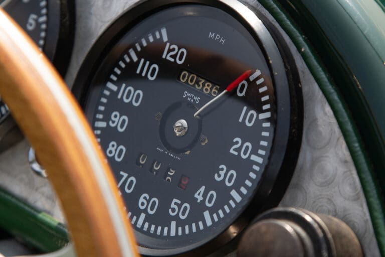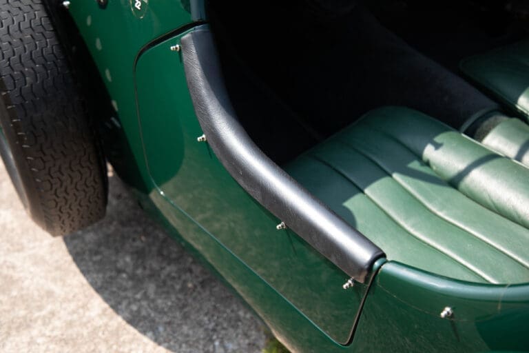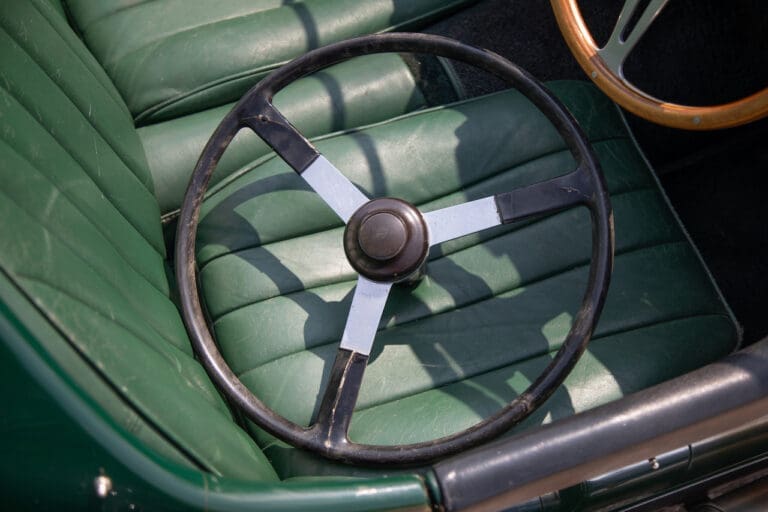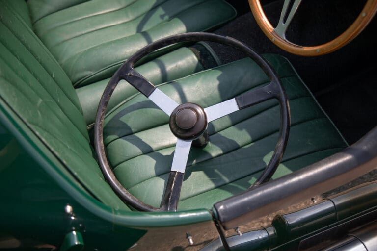 Running and driving faultlessly during our recent photography session, the Le Mans replica took part in an on-track demonstration to celebrate the life and success of Stirling Moss, during the 2006 Melbourne Grand Prix – his signature still sits above the driver’s door as a memento from that event. The car is correctly UK-registered as a 1952 Frazer Nash Le Mans (chassis number 421100), with proof of taxes and duties paid when imported by CARS UK. Sold with a large and comprehensive history file including technical literature, early correspondence with Werner Oswald himself as well as lots of receipts for maintenance and repairs. Offered with a tonneau cover and an original specification steering wheel – a smaller wood-rimmed Mota Lita sample is currently fitted for ease in entering and exiting the cockpit.