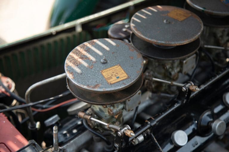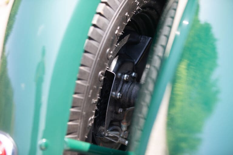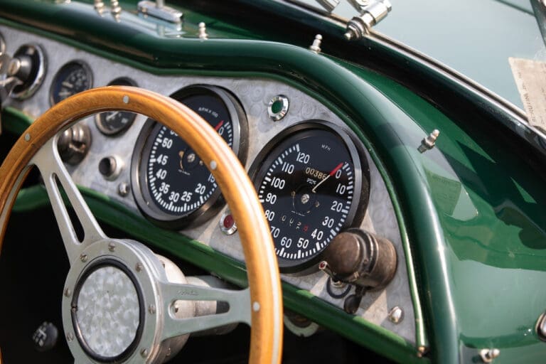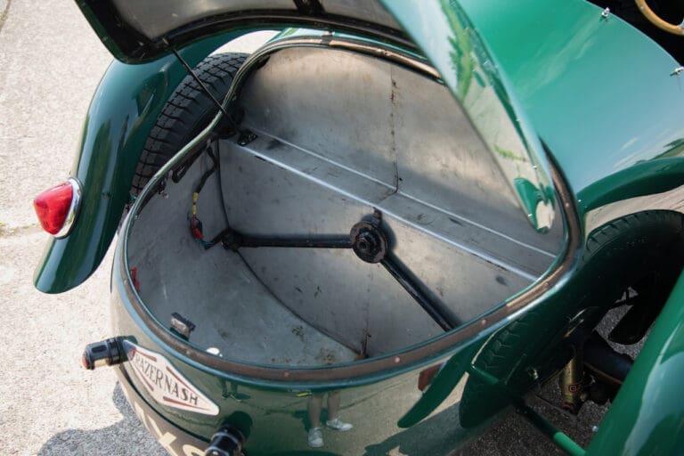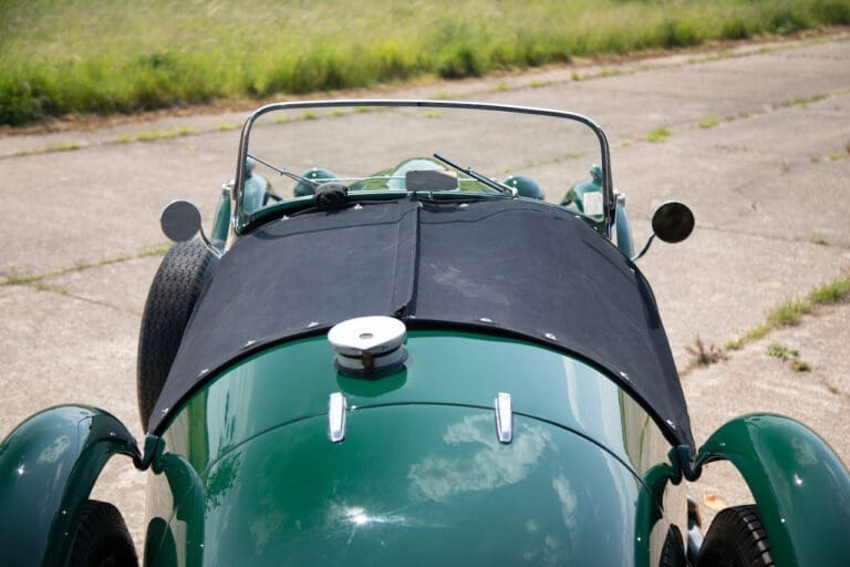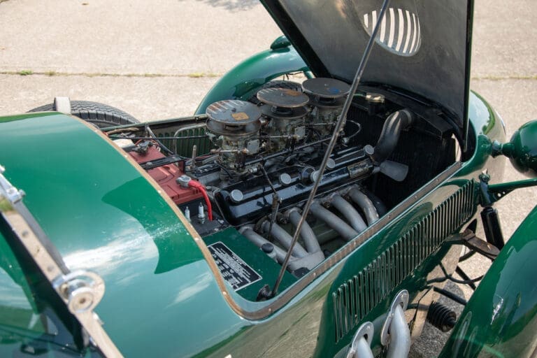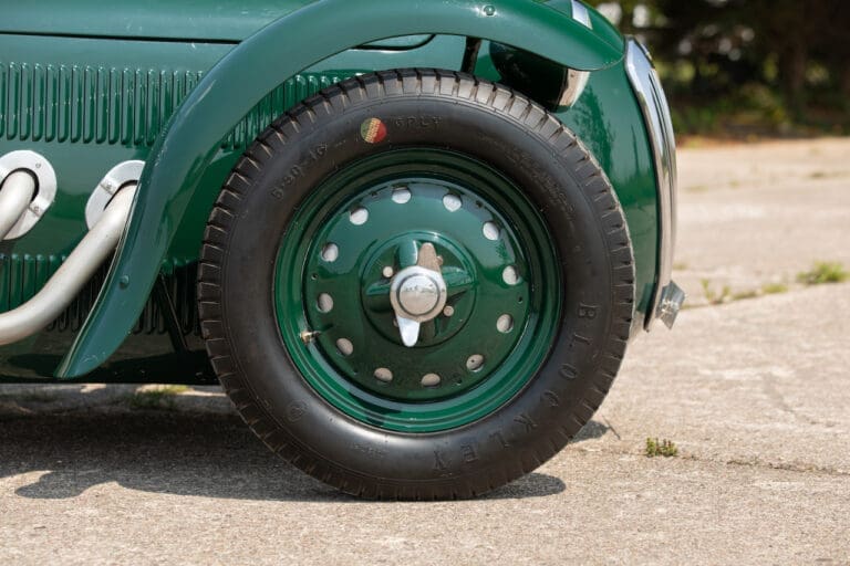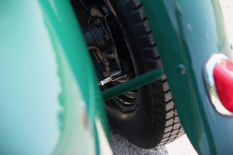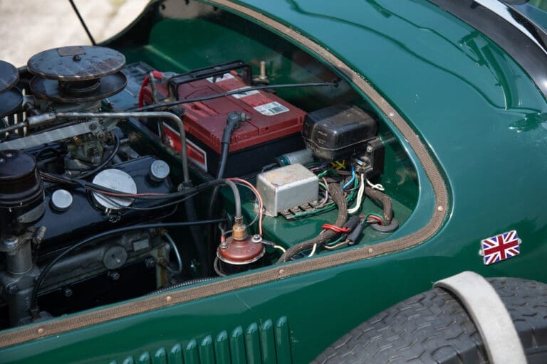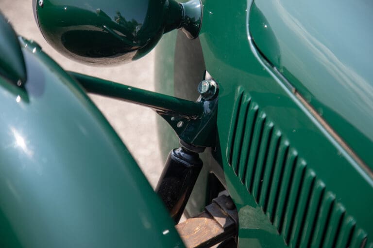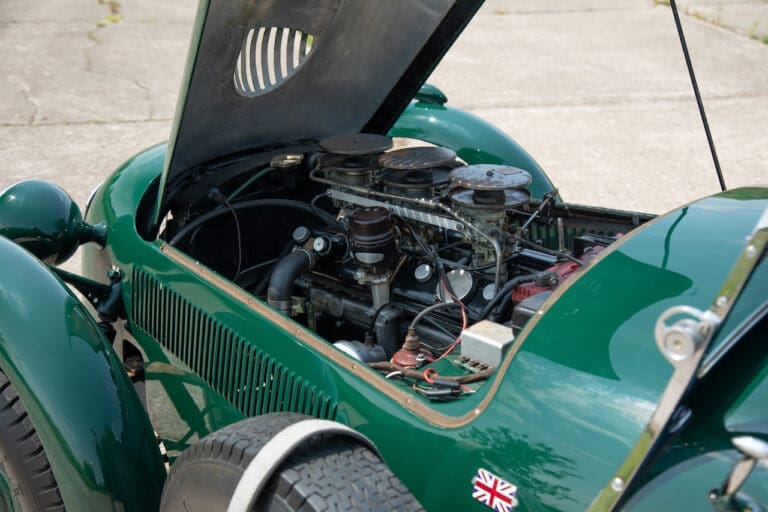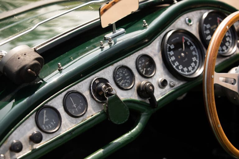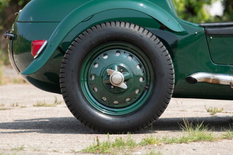 Running and driving faultlessly during our recent photography session, the Le Mans replica took part in an on-track demonstration to celebrate the life and success of Stirling Moss, during the 2006 Melbourne Grand Prix – his signature still sits above the driver’s door as a memento from that event. The car is correctly UK-registered as a 1952 Frazer Nash Le Mans (chassis number 421100), with proof of taxes and duties paid when imported by CARS UK. Sold with a large and comprehensive history file including technical literature, early correspondence with Werner Oswald himself as well as lots of receipts for maintenance and repairs. Offered with a tonneau cover and an original specification steering wheel – a smaller wood-rimmed Mota Lita sample is currently fitted for ease in entering and exiting the cockpit.