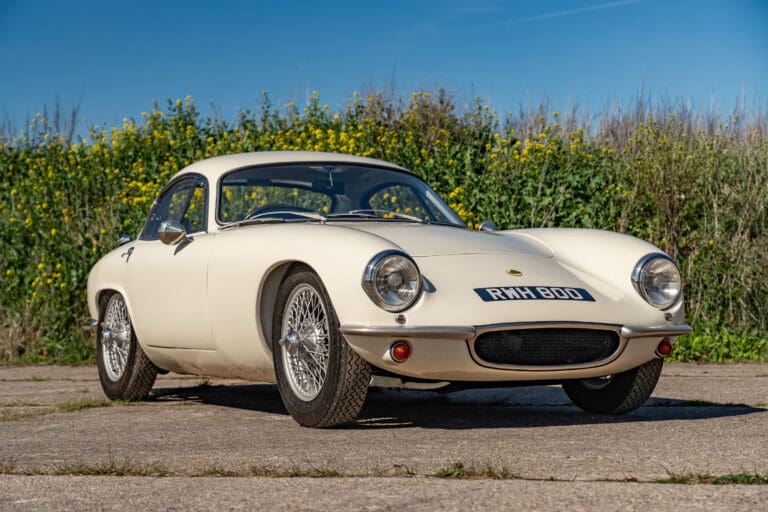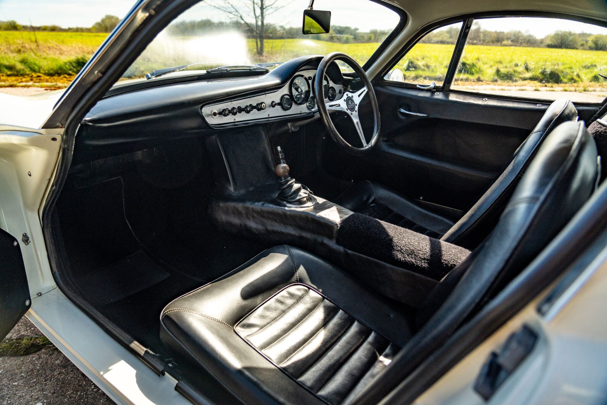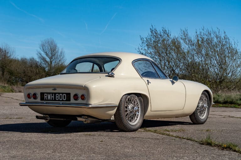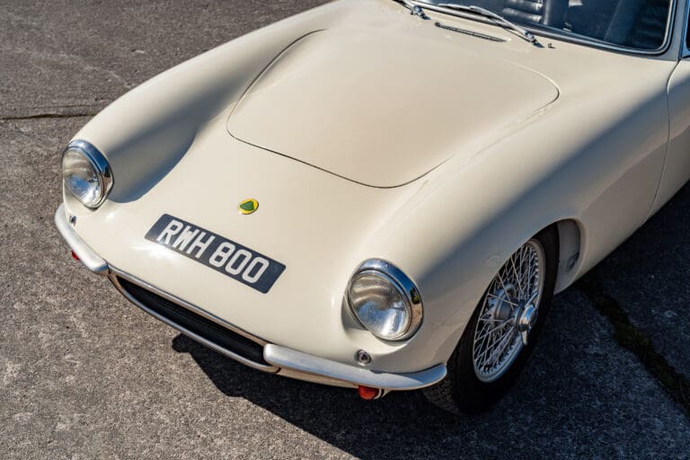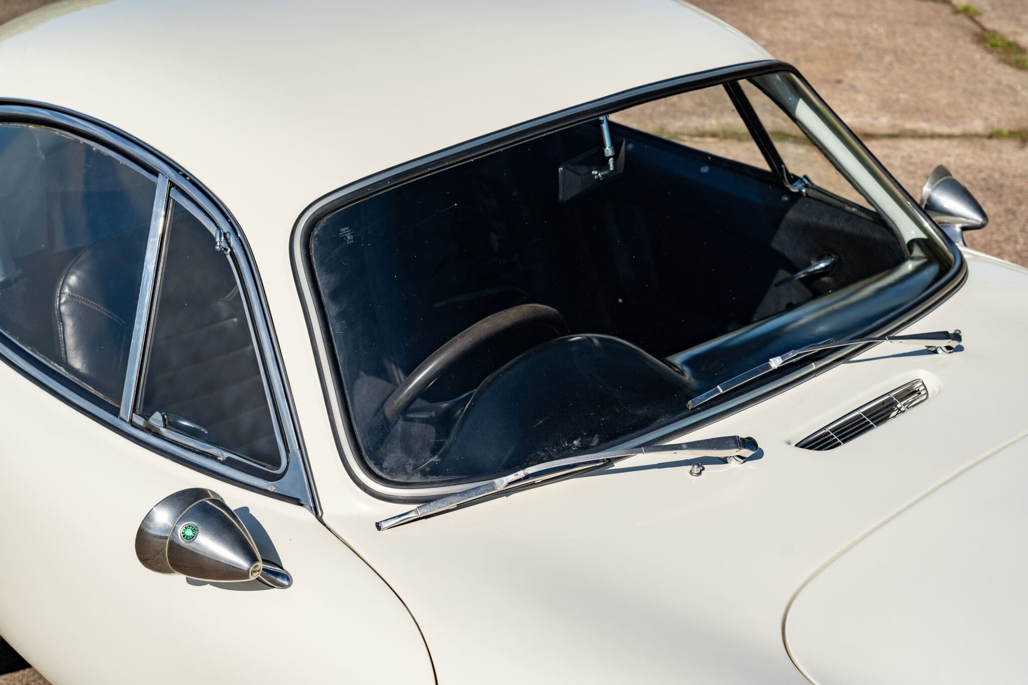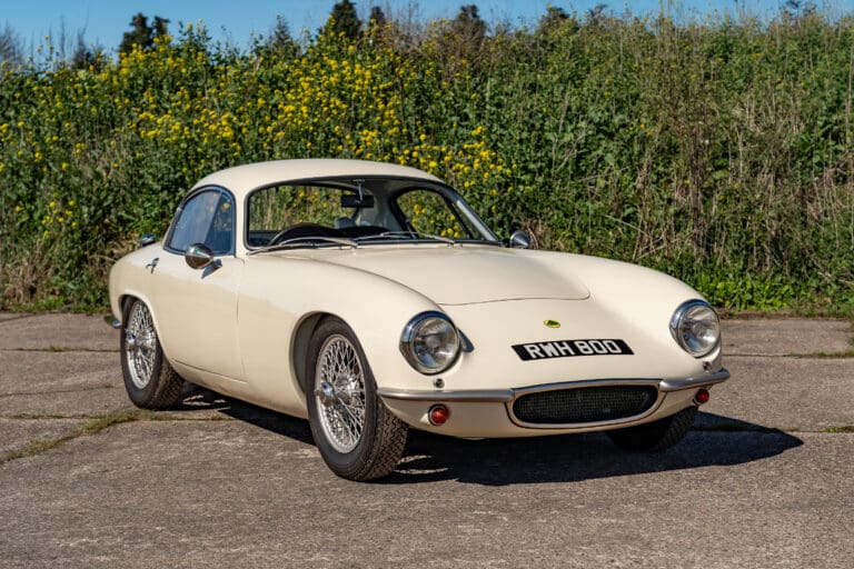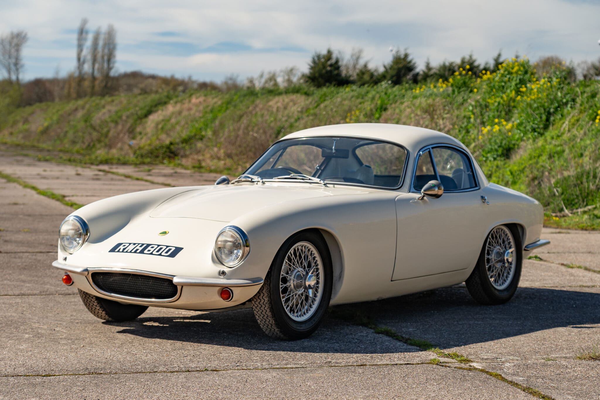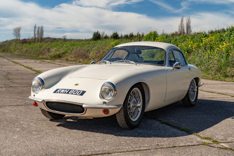 Unveiled at the 1957 London Motor Show, the Elite (Type 14) was Colin Chapman’s first production road car and also the world’s first fibreglass monocoque. The specification included Formula 2-derived all-round independent suspension and four-wheel disc brakes (inboard at the rear). Powered by a Coventry-Climax SOHC four-cylinder ‘FWE’ engine mated to four-speed manual transmission, its amazing 0.29 drag co-efficiency allowed all but the basic variant to claim a top speed of over 120mph. The work of Peter Kirwin-Taylor, aerodynamicist Frank Costin and John Frayling, the coupe’s super sleek silhouette is still considered a masterpiece. The first 250 or so examples, including this car, were fitted with ‘Maximar’ bodies, whilst later cars had their coachwork outsourced to the Bristol Aeroplane Company.