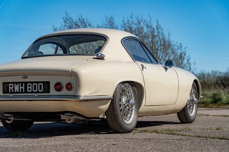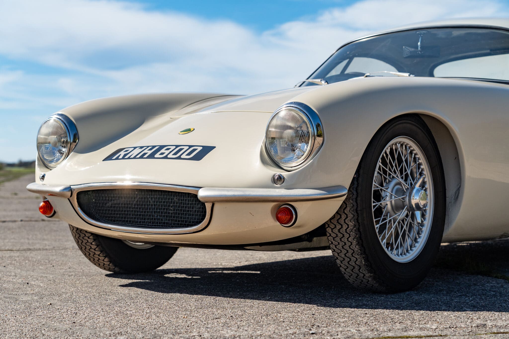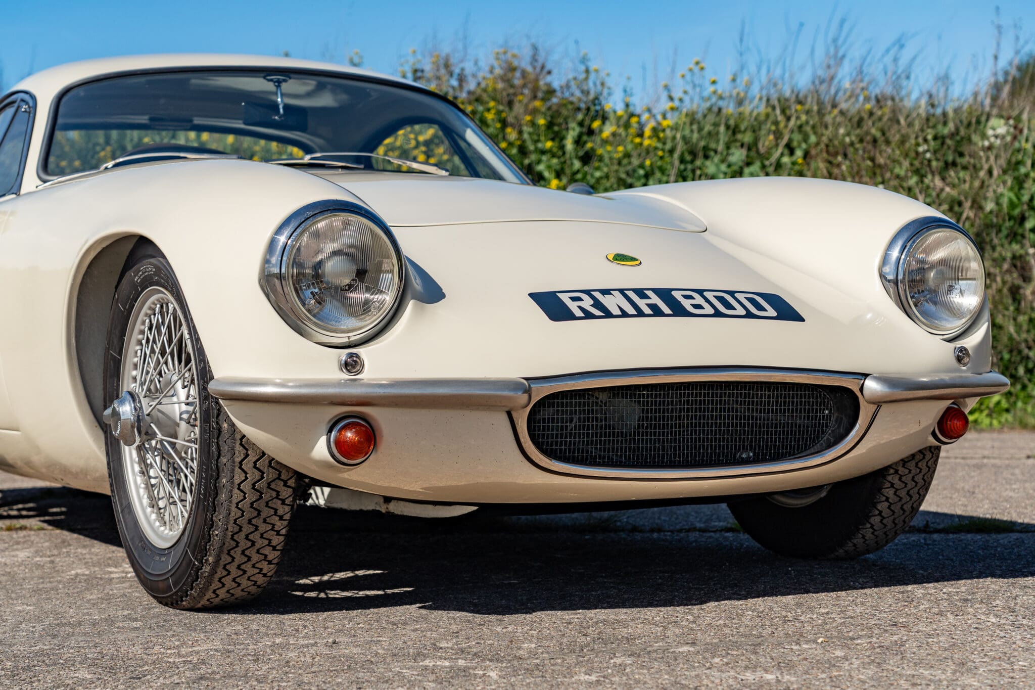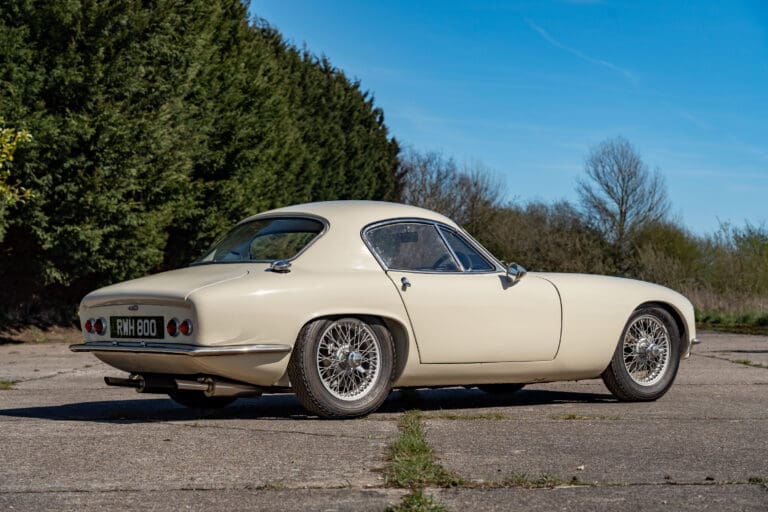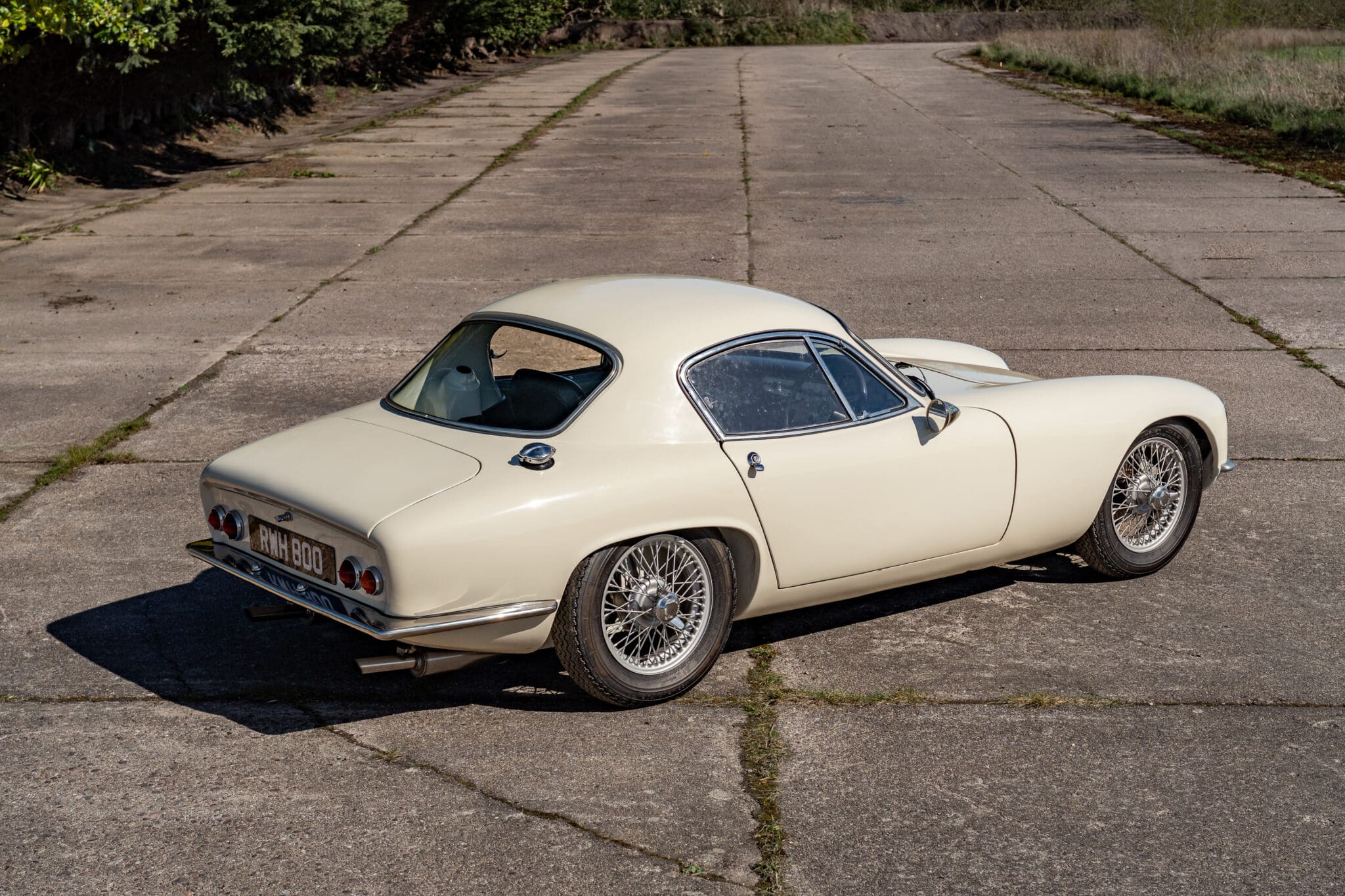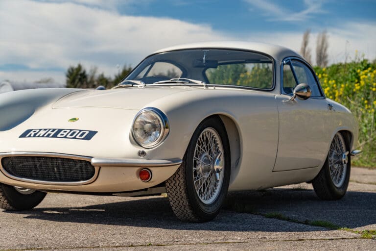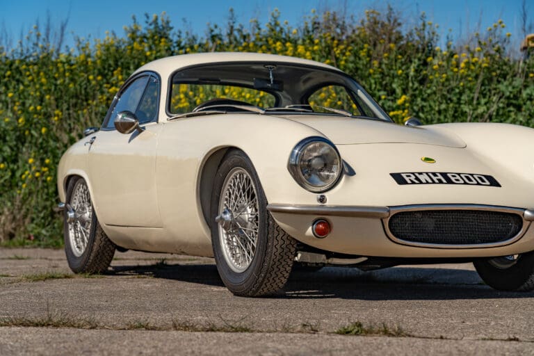 Unveiled at the 1957 London Motor Show, the Elite (Type 14) was Colin Chapman’s first production road car and also the world’s first fibreglass monocoque. The specification included Formula 2-derived all-round independent suspension and four-wheel disc brakes (inboard at the rear). Powered by a Coventry-Climax SOHC four-cylinder ‘FWE’ engine mated to four-speed manual transmission, its amazing 0.29 drag co-efficiency allowed all but the basic variant to claim a top speed of over 120mph. The work of Peter Kirwin-Taylor, aerodynamicist Frank Costin and John Frayling, the coupe’s super sleek silhouette is still considered a masterpiece. The first 250 or so examples, including this car, were fitted with ‘Maximar’ bodies, whilst later cars had their coachwork outsourced to the Bristol Aeroplane Company.