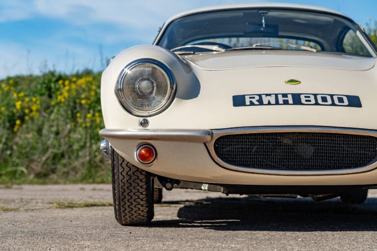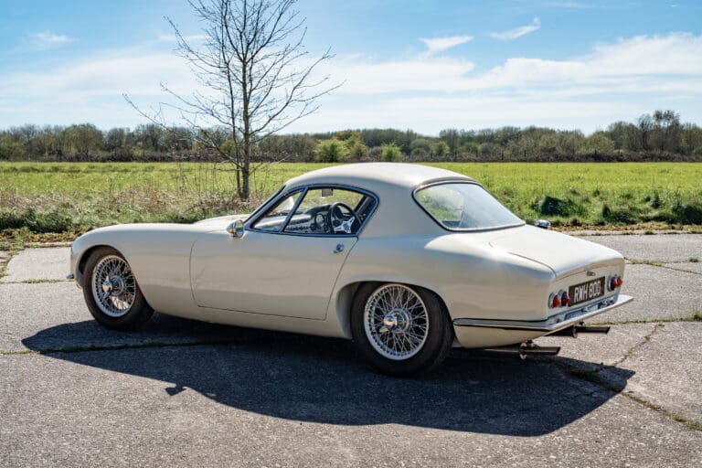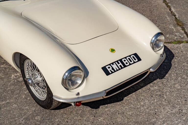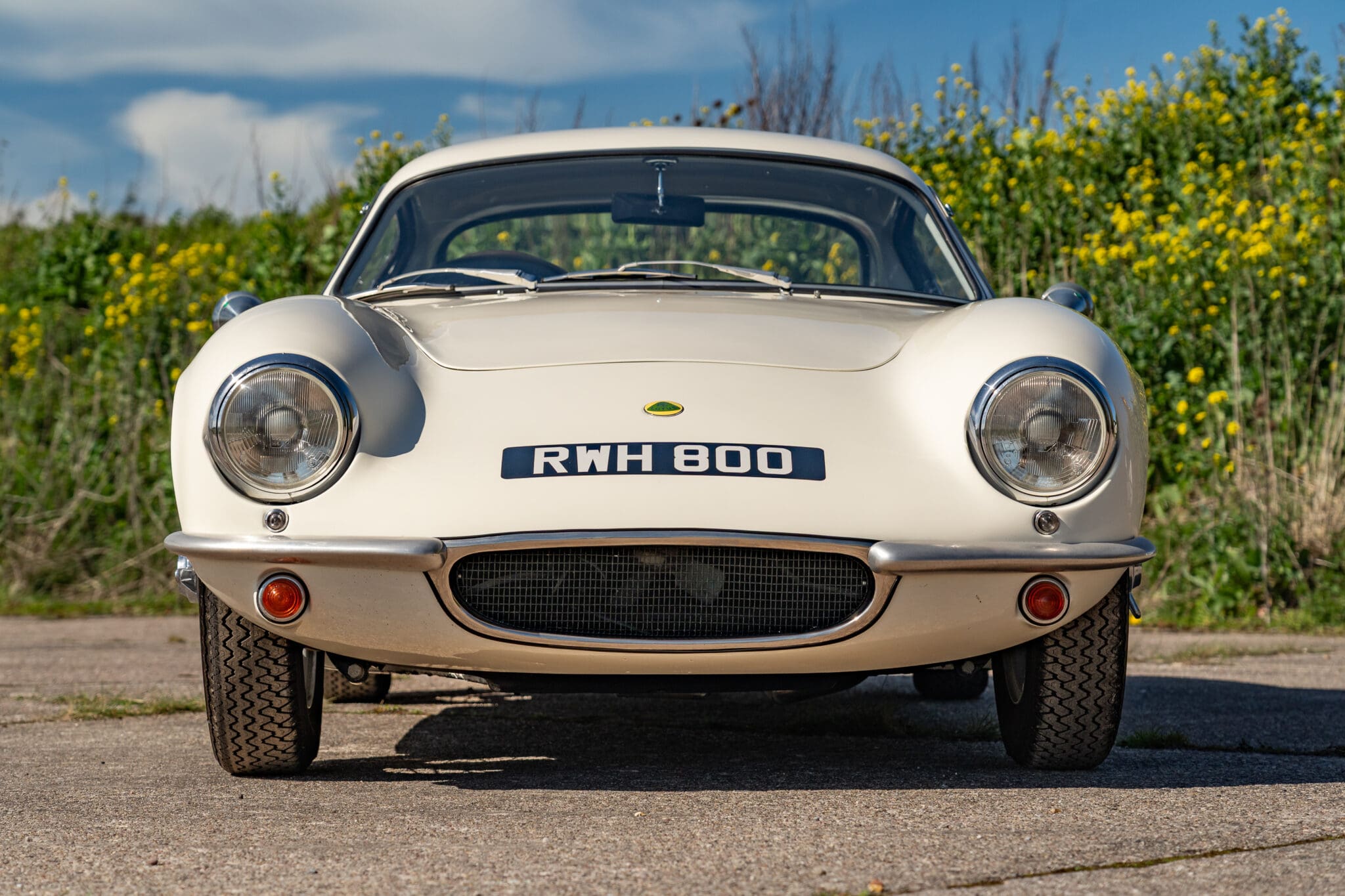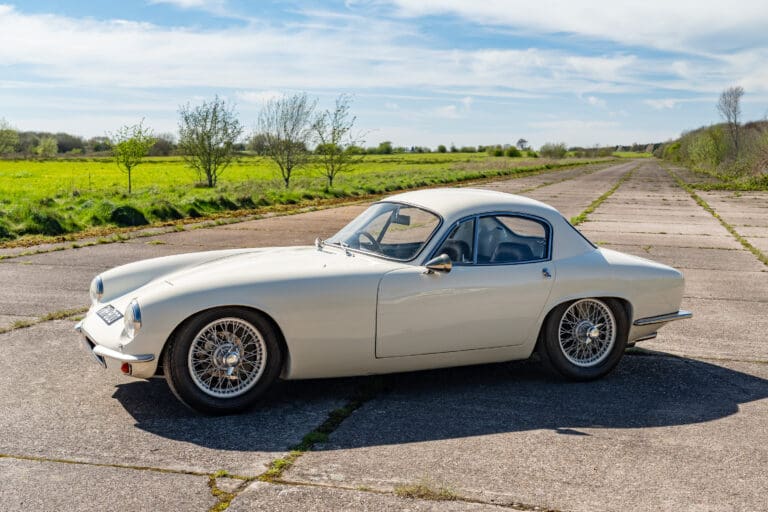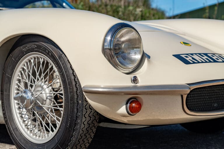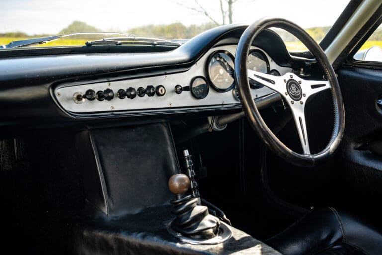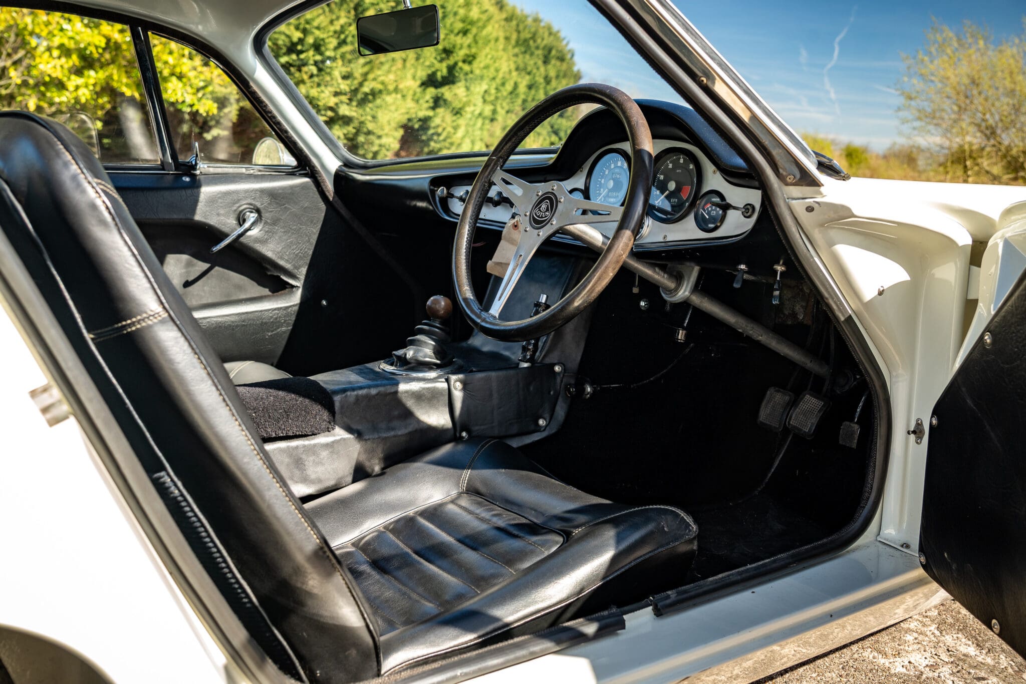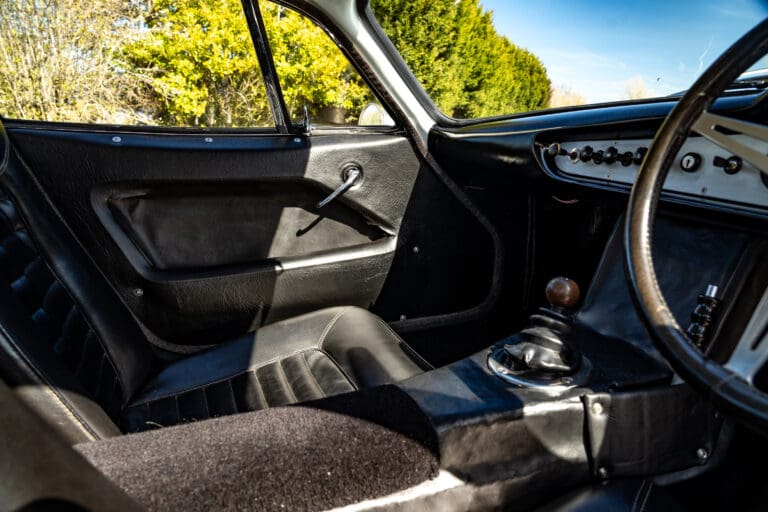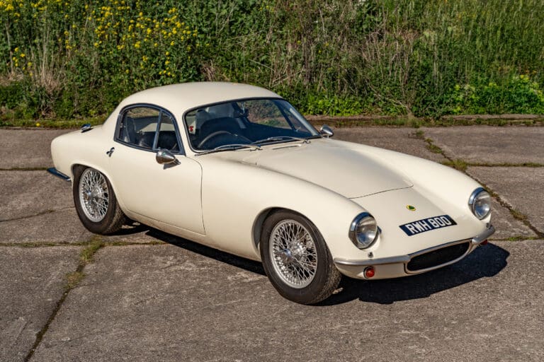 Unveiled at the 1957 London Motor Show, the Elite (Type 14) was Colin Chapman’s first production road car and also the world’s first fibreglass monocoque. The specification included Formula 2-derived all-round independent suspension and four-wheel disc brakes (inboard at the rear). Powered by a Coventry-Climax SOHC four-cylinder ‘FWE’ engine mated to four-speed manual transmission, its amazing 0.29 drag co-efficiency allowed all but the basic variant to claim a top speed of over 120mph. The work of Peter Kirwin-Taylor, aerodynamicist Frank Costin and John Frayling, the coupe’s super sleek silhouette is still considered a masterpiece. The first 250 or so examples, including this car, were fitted with ‘Maximar’ bodies, whilst later cars had their coachwork outsourced to the Bristol Aeroplane Company.