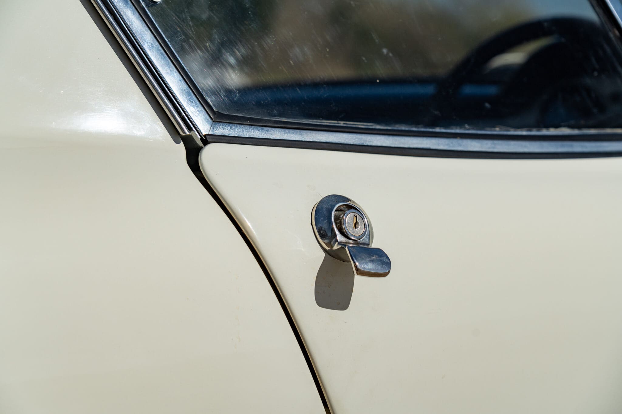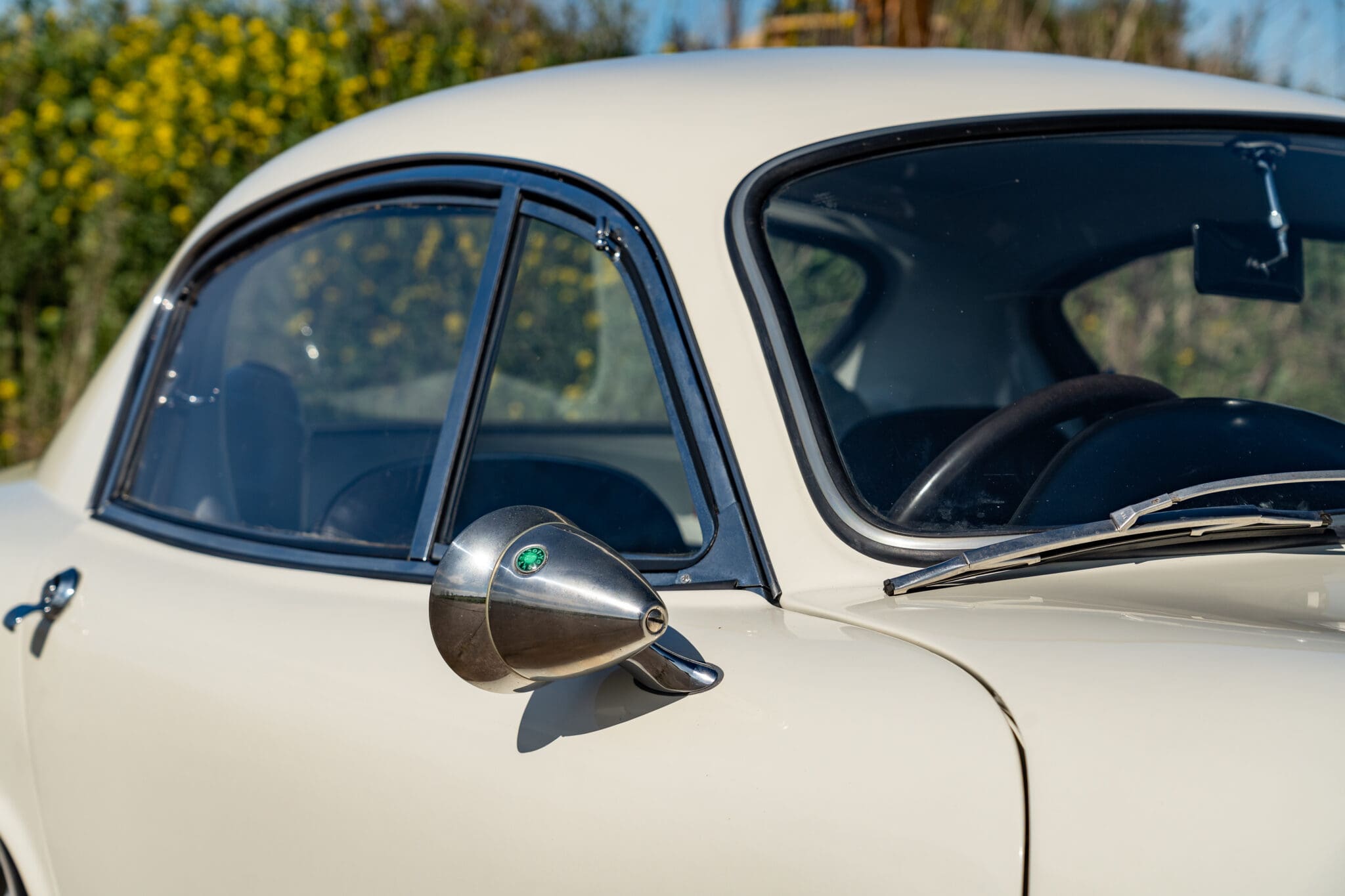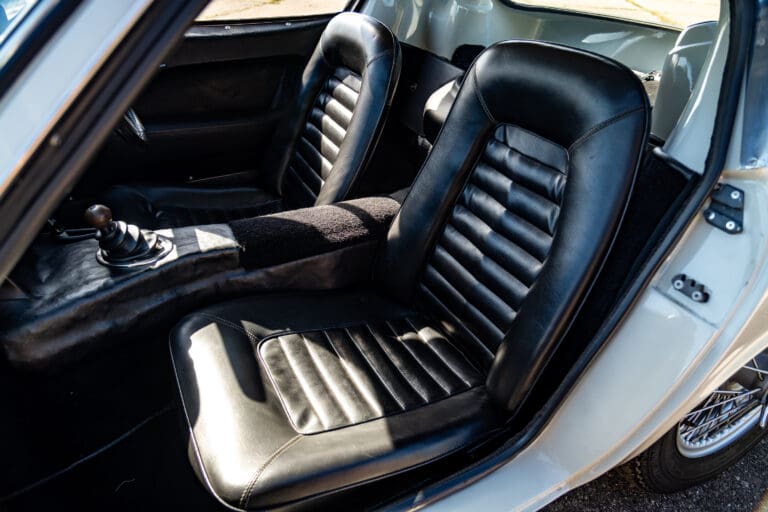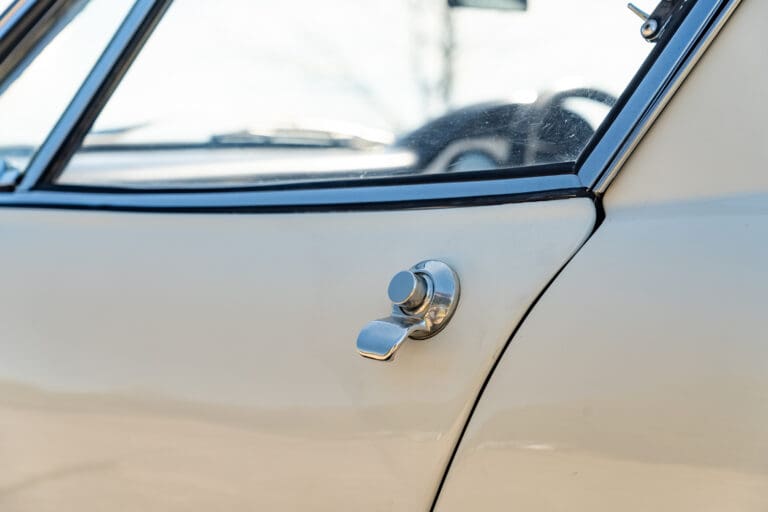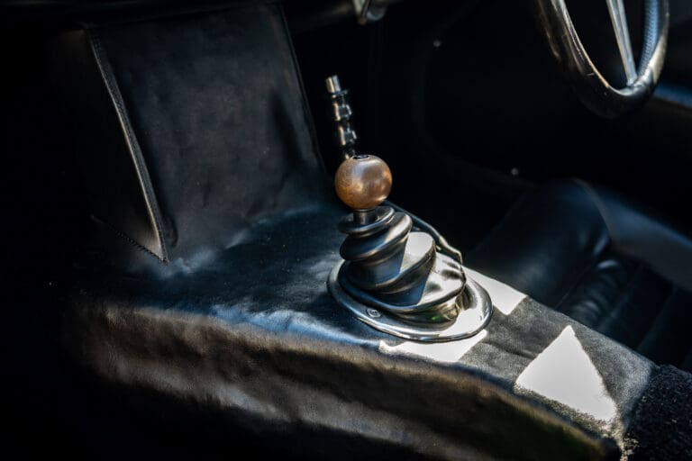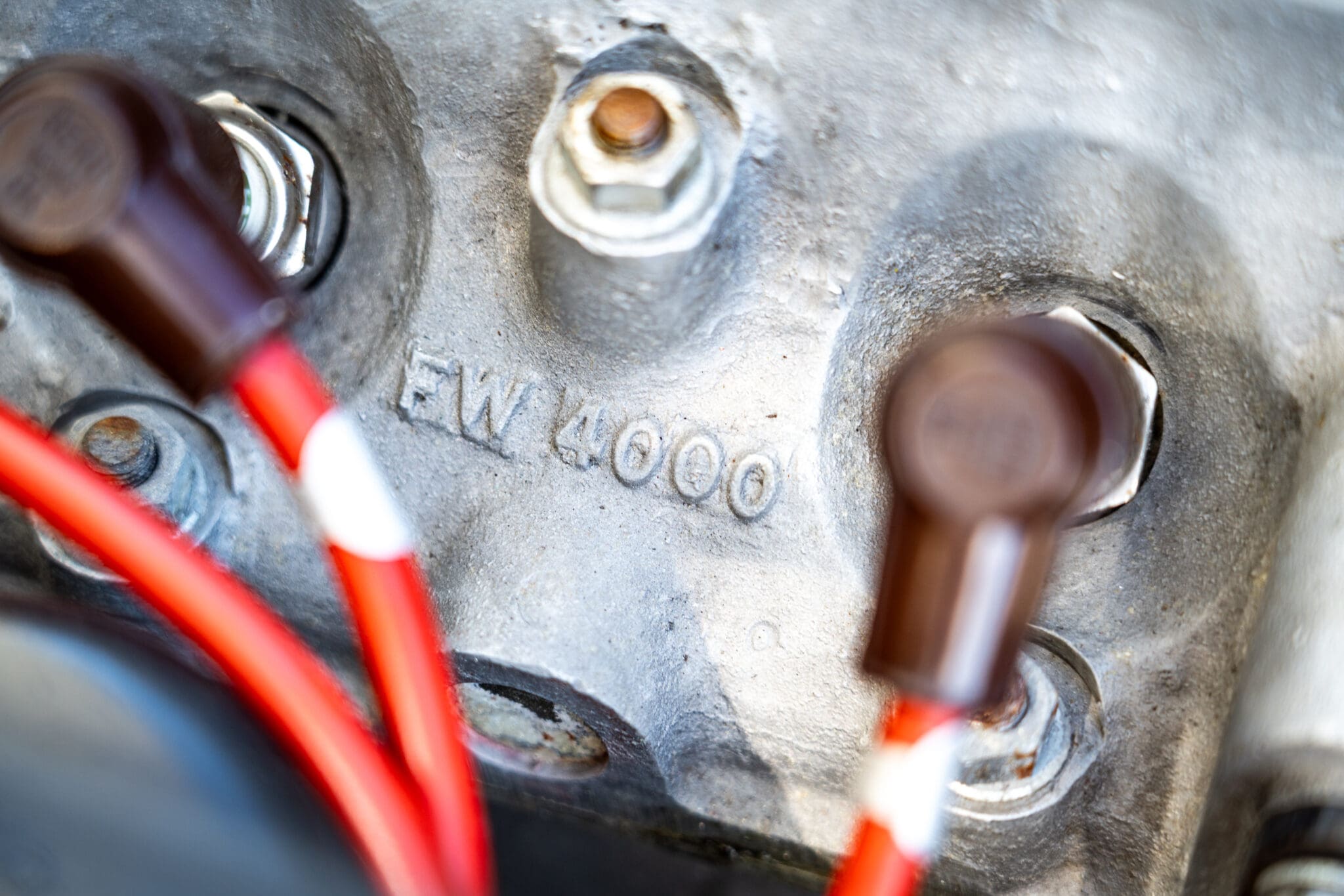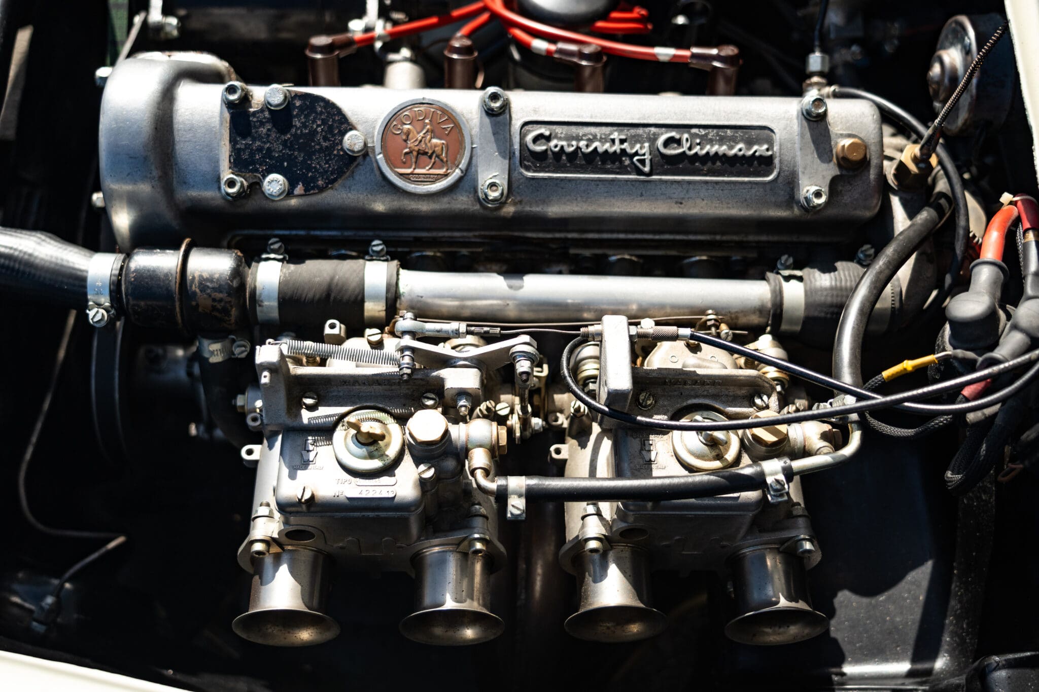 Unveiled at the 1957 London Motor Show, the Elite (Type 14) was Colin Chapman’s first production road car and also the world’s first fibreglass monocoque. The specification included Formula 2-derived all-round independent suspension and four-wheel disc brakes (inboard at the rear). Powered by a Coventry-Climax SOHC four-cylinder ‘FWE’ engine mated to four-speed manual transmission, its amazing 0.29 drag co-efficiency allowed all but the basic variant to claim a top speed of over 120mph. The work of Peter Kirwin-Taylor, aerodynamicist Frank Costin and John Frayling, the coupe’s super sleek silhouette is still considered a masterpiece. The first 250 or so examples, including this car, were fitted with ‘Maximar’ bodies, whilst later cars had their coachwork outsourced to the Bristol Aeroplane Company.