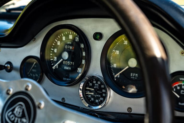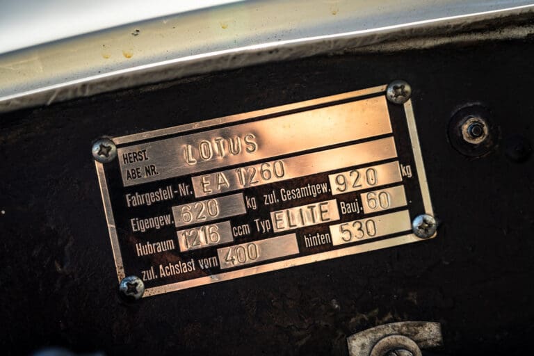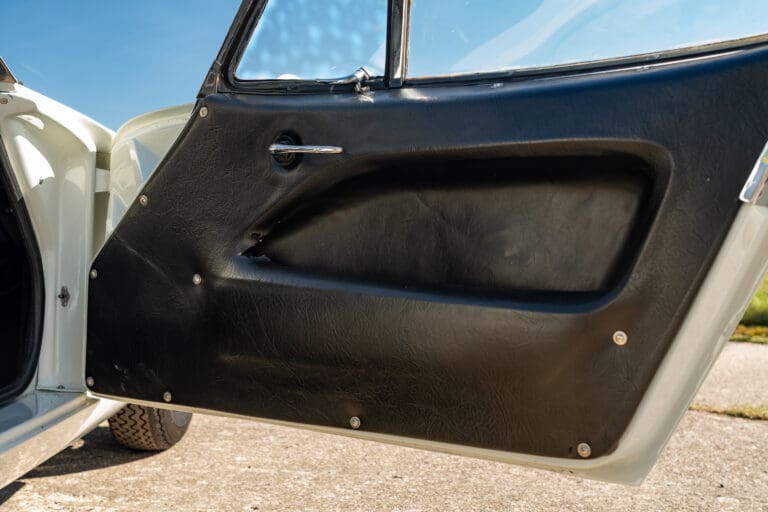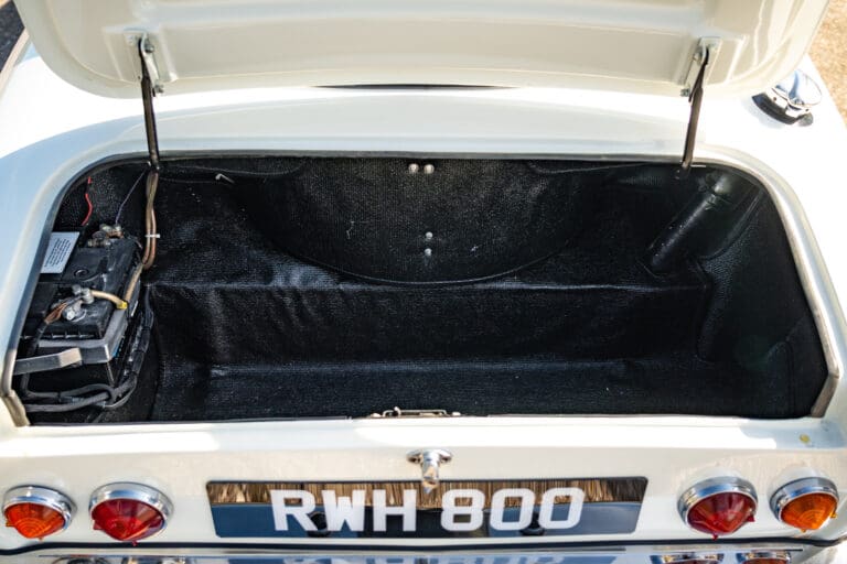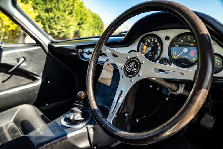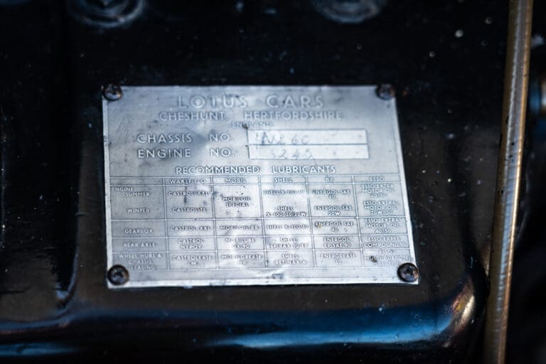 This Series 1 Elite comes to the market following twelve years of ownership and has been in dry storage throughout – it has seen very little use during this period. ‘RWH 800’ was originally supplied new to its first custodian on the 12th July 1960, via dealers David Buxton Cars Ltd of Derby, who were also TVR main agents at the time. The accompanying ‘Club Elite’ dating letter and Lotus Archive ‘certificate of provenance’ confirm that the car was still resident in the North West of England (Wigan) up until at least 1972. Other paperwork in the file then shows that it was exported and re-registered in Switzerland during 1987 by Urban Fassler – the well known Lotus 35 racer and FJ/F3 preparer/supplier, who served his time at Sauber in period. It returned to the UK in 2008, when purchased by classic racing car specialist Sid Hoole, before passing on to our vendor in 2014. Evidently a recipient of much past professional restoration work, ‘RWH 800’ displays extremely well, with only minor wear commensurate with age and use. Running well during our recent photography session, this early Elite is UK registered, ready to use and enjoy, with a spare set of original specification wheels also included.