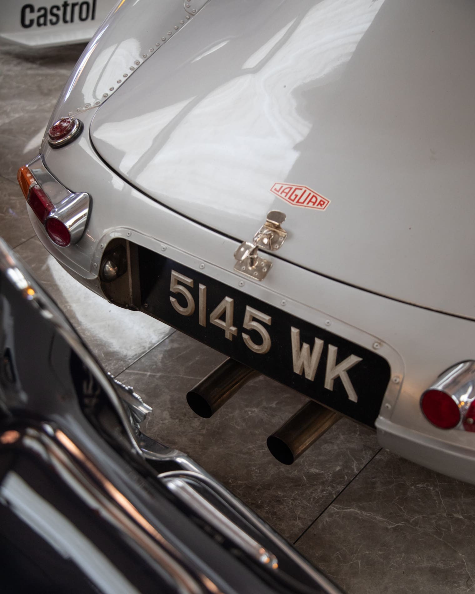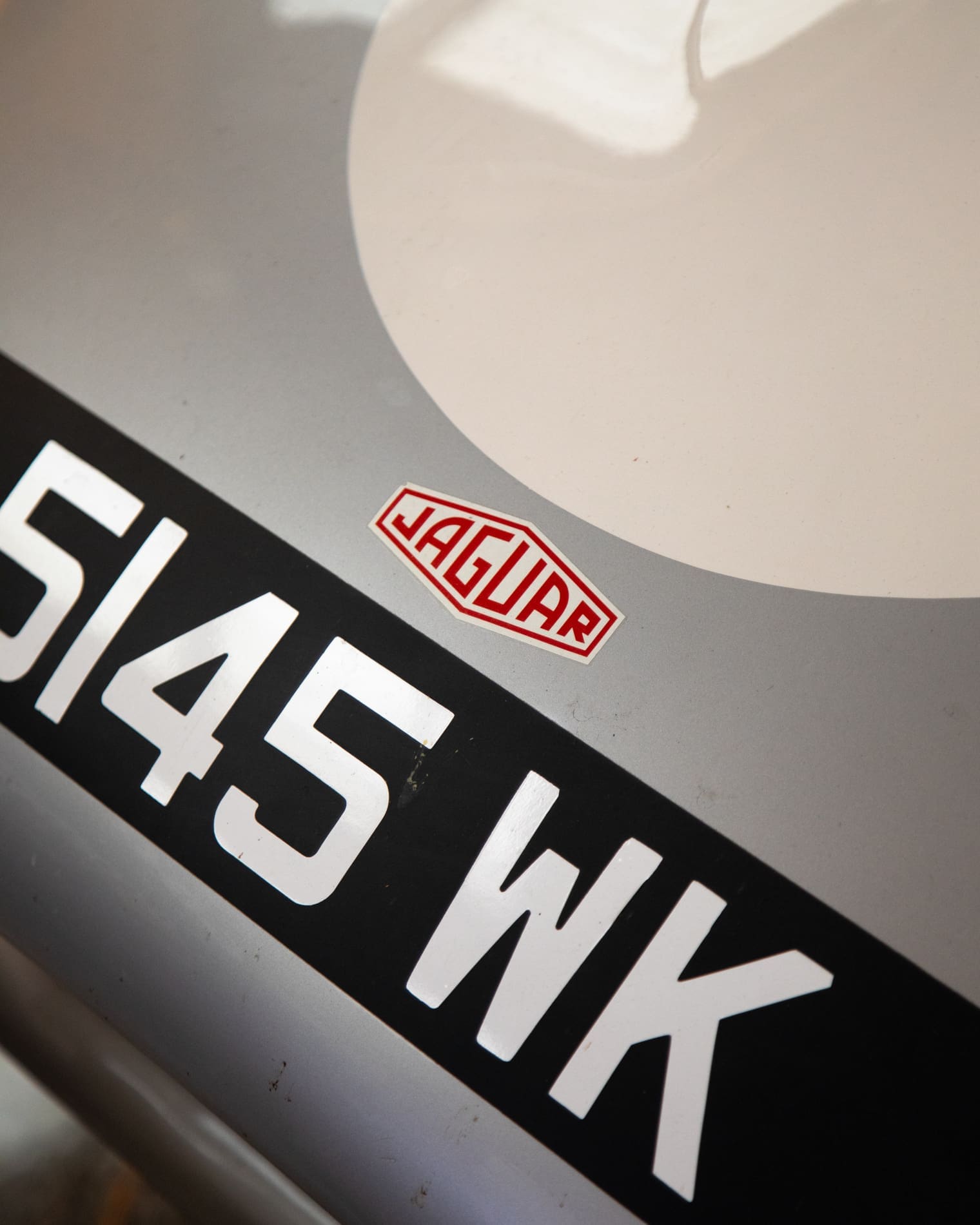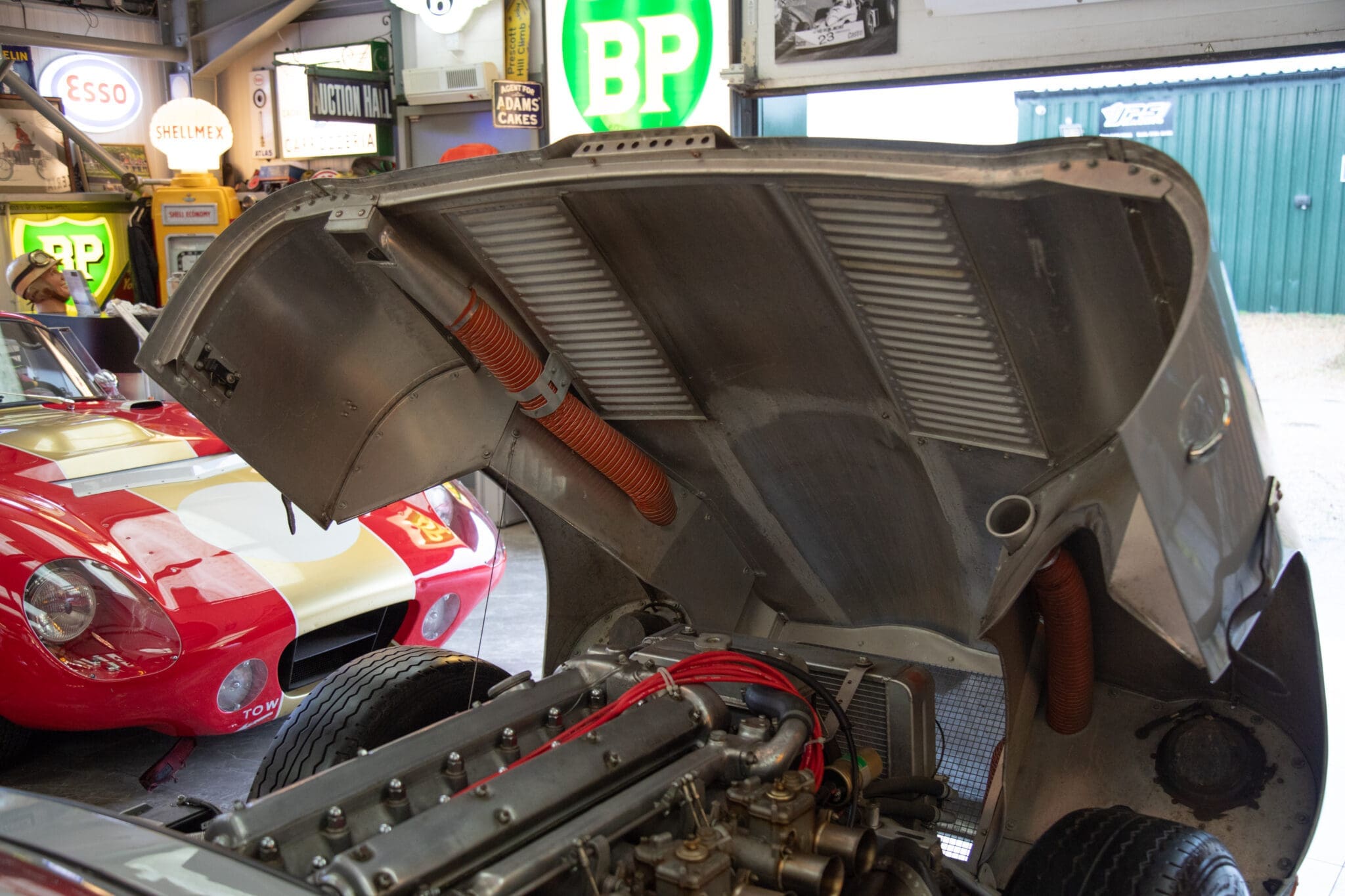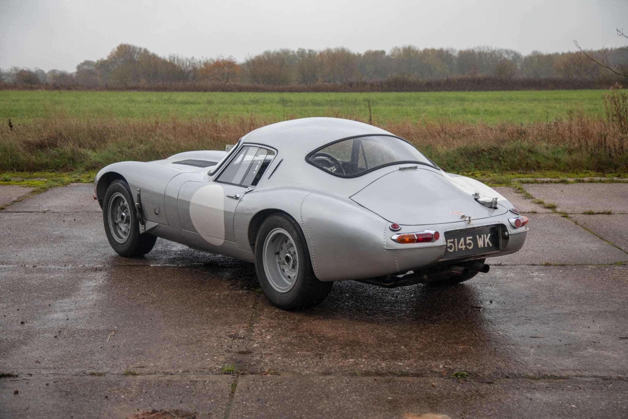 The E-type now wears a period Coventry registration number plate ‘5145WK’, very similar to those used by the Works on the factory ‘lightweight’ cars. Interestingly, the original registration number was ‘1258 WK’, when supplied by Henleys of London to a Dr. Burton, confirmed on the accompanying Heritage certificate. Whilst the HTP has now lapsed, the impressive specification still boasts its FIA specification roll cage, plumbed-in fire extinguisher, electrical cut off with internal and external pulls, 8000rpm chronometric tachometer and a removable steering wheel. A long-range fuel tank is installed and the cockpit features two trimmed bucket seats, with four points racing harnesses. The passenger seat hinges forwards to access the rear brakes through the ’trap door’ in the bulkhead. The brakes were uprated, but legal and fully compliant with FIA rulings and the shock absorbers are fully-adjustable Leda units. Riding on magnesium peg-drive wheels, handling is aided with an uprated anti roll bar / subframe.