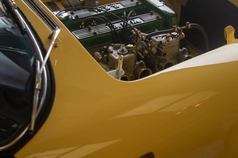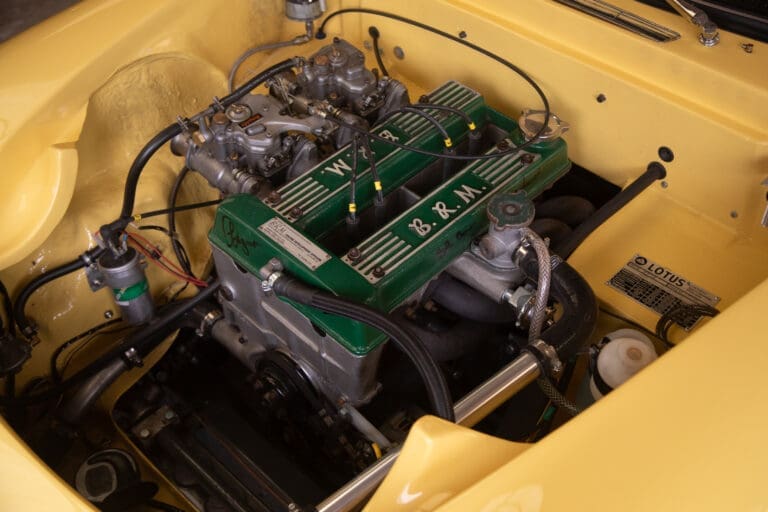 This road-going Lotus Elan S1 is registered BTR 604B and was restored to lightweight / fast-road specification over the past 5 years. With further development and investment, the car would make an ideal basis for a GTS HTP race car. A new 26R-specification chassis was supplied by TTR (Tony Thompson), whilst the bodywork has been painted to an extremely high standard in period Fiesta yellow, complemented by 26R specification wheel arches, ‘Chinese Eye’ headlamp covers and a contrasting silver hardtop. The engine was built by Iain Ross who previously worked at Agra engineering and is one of the best respected engine builders in Scotland. A dyno sheet showing a healthy 140bhp accompanies the build as well as the receipts for parts and labour. The impressive engine specification includes a period 120E block, steel caps, steel crank on -10, wide journal steel rods, QED pistons, Burton water pump front cover, Newman PH2 cams. A slightly later +2 gearbox was used with the stronger synchros and drives through an AP single plate clutch and polished diff casing (final drive is 3.54 for road use). The suspension was fully rebuilt too and incorporates Koni rear shock absorbers and refurbished brakes throughout, whilst the car rides on period alloy wheels.