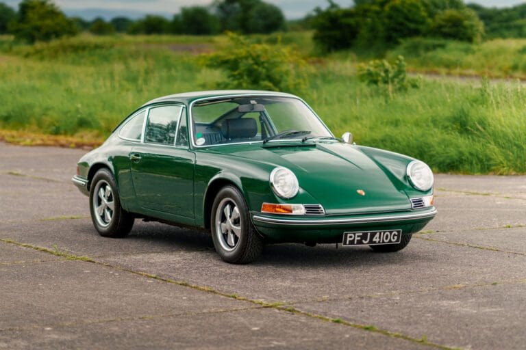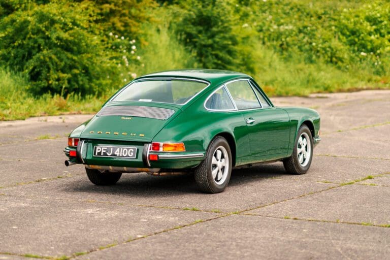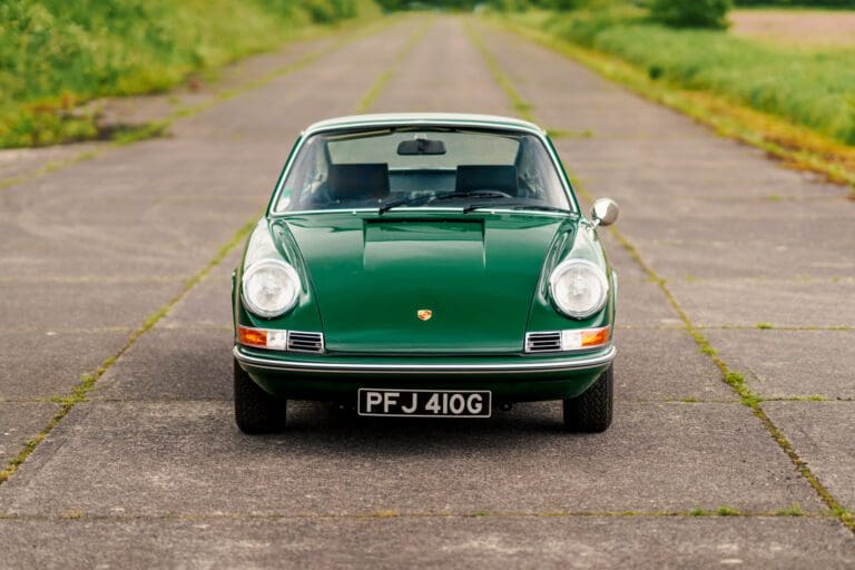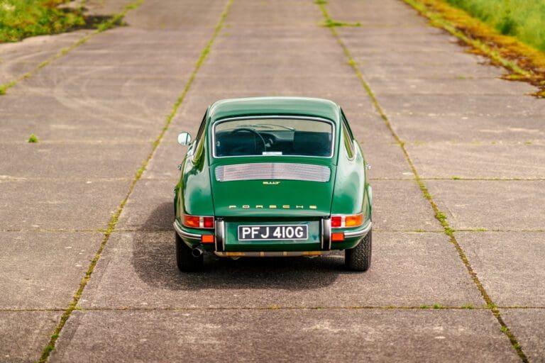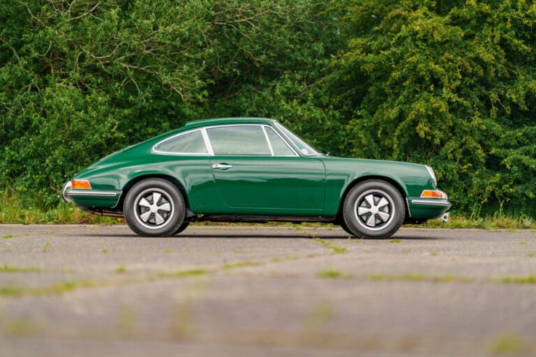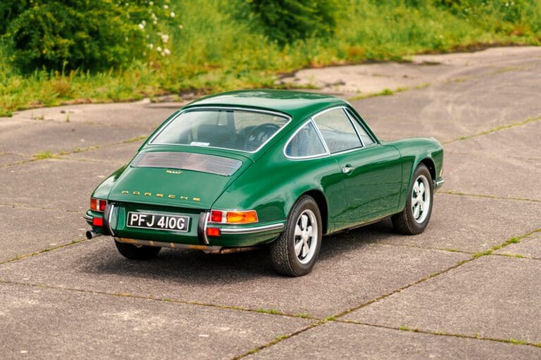This eye-catching 911 T coupe left the Karmann plant on the 7th March 1969, finished in Irish Green with a leather interior, however a copy of the factory build records doesn’t list the interior colour. It was delivered to its first owner with a plethora of desirable options including a five-speed manual transmission, rubber bumpers (with horns front and rear), tinted glass, radio antenna and loud speaker, together with Koni shock absorbers.
