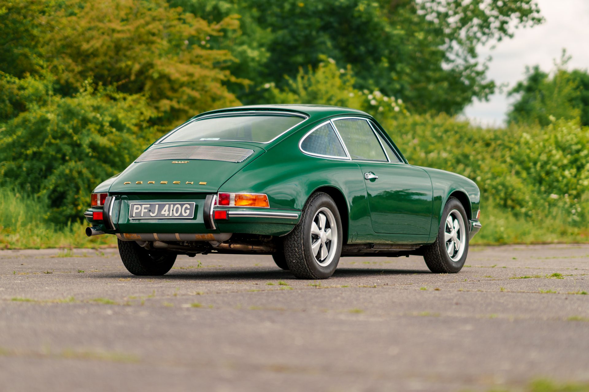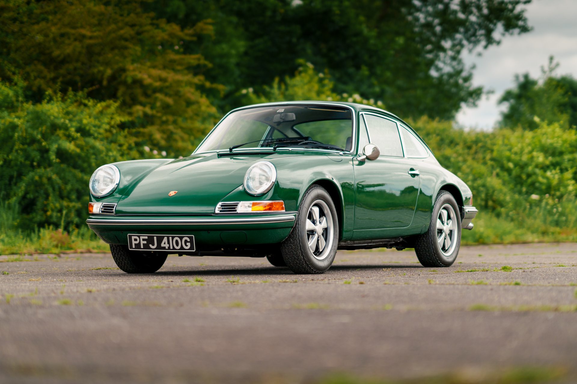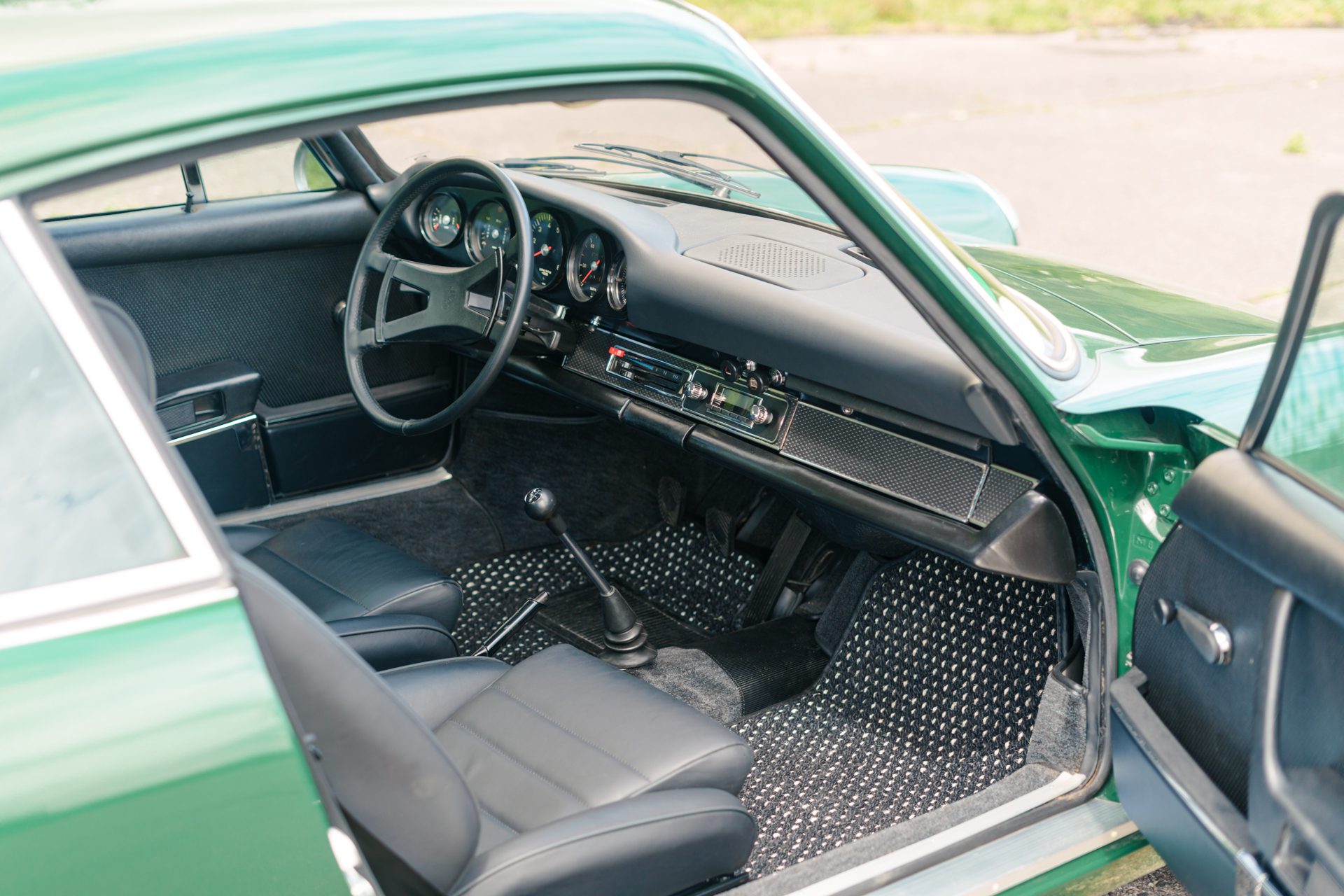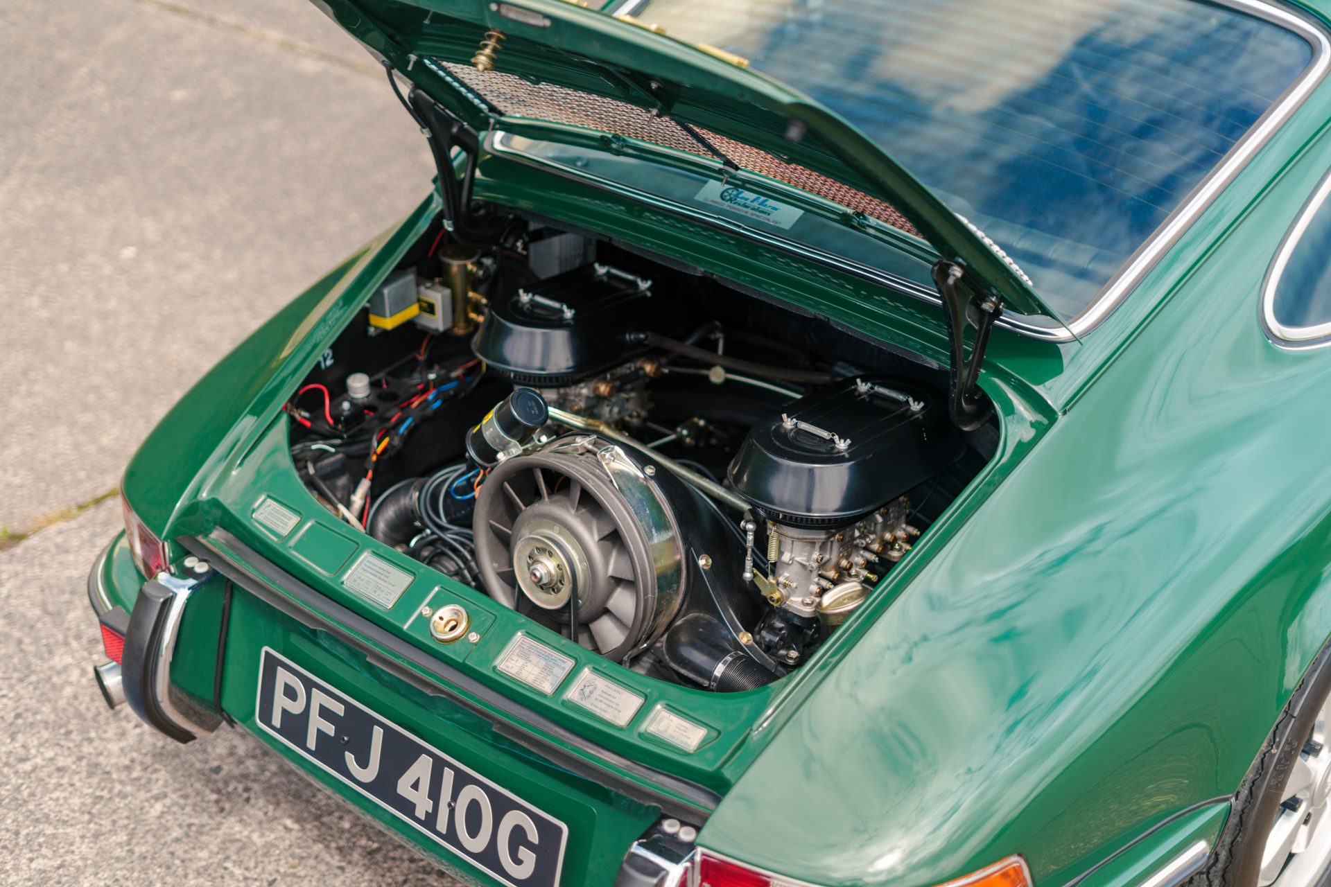 This eye-catching 911 T coupe left the Karmann plant on the 7th March 1969, finished in Irish Green with a leather interior, however a copy of the factory build records doesn’t list the interior colour. It was delivered to its first owner with a plethora of desirable options including a five-speed manual transmission, rubber bumpers (with horns front and rear), tinted glass, radio antenna and loud speaker, together with Koni shock absorbers.