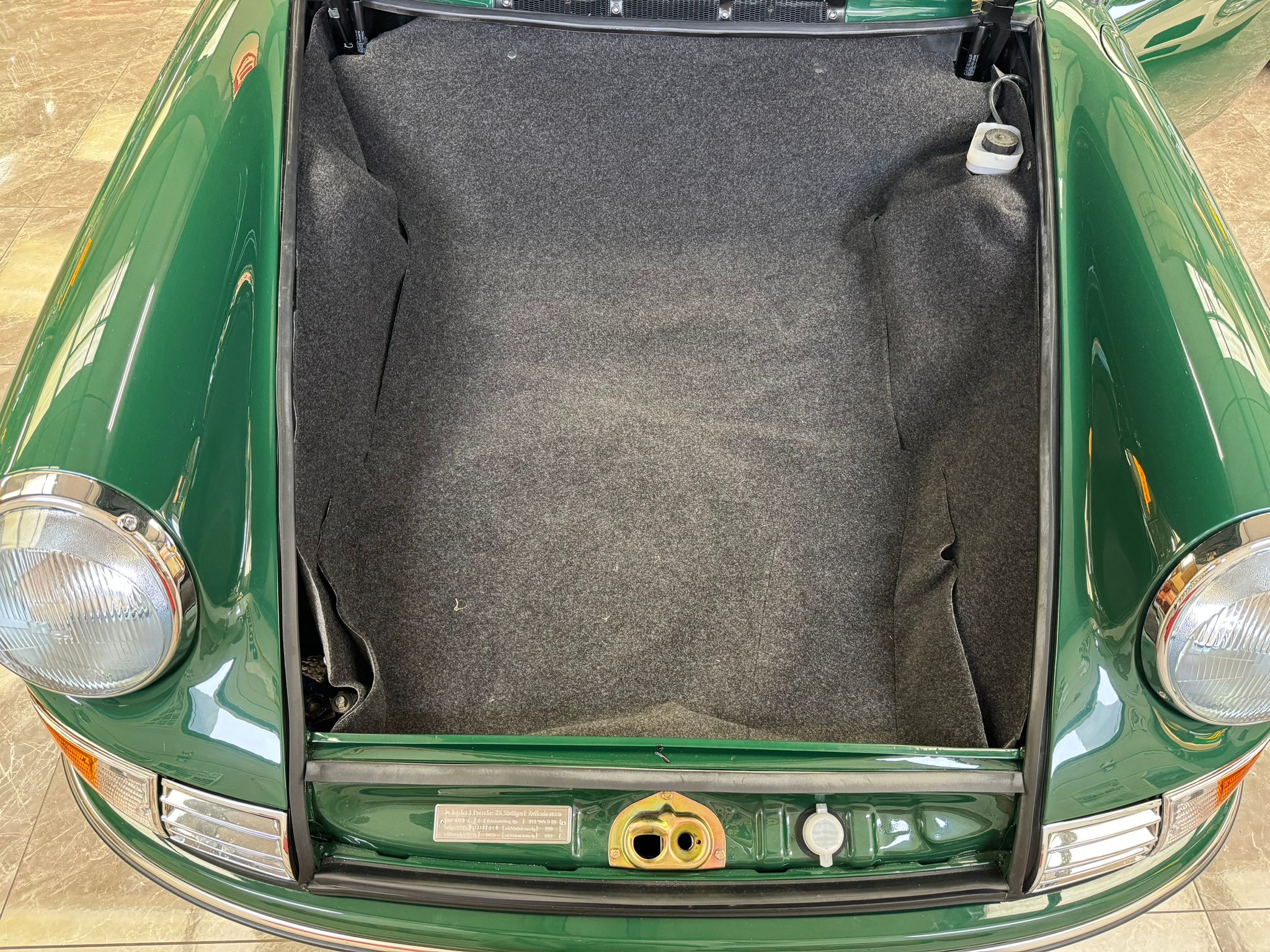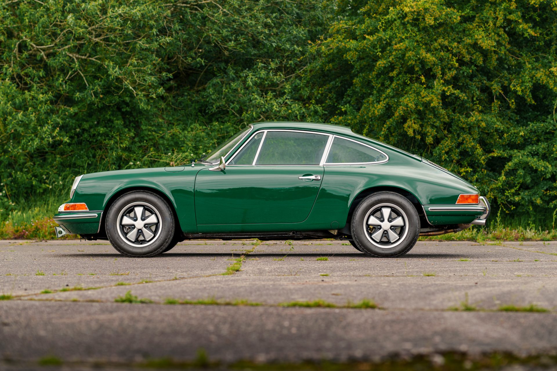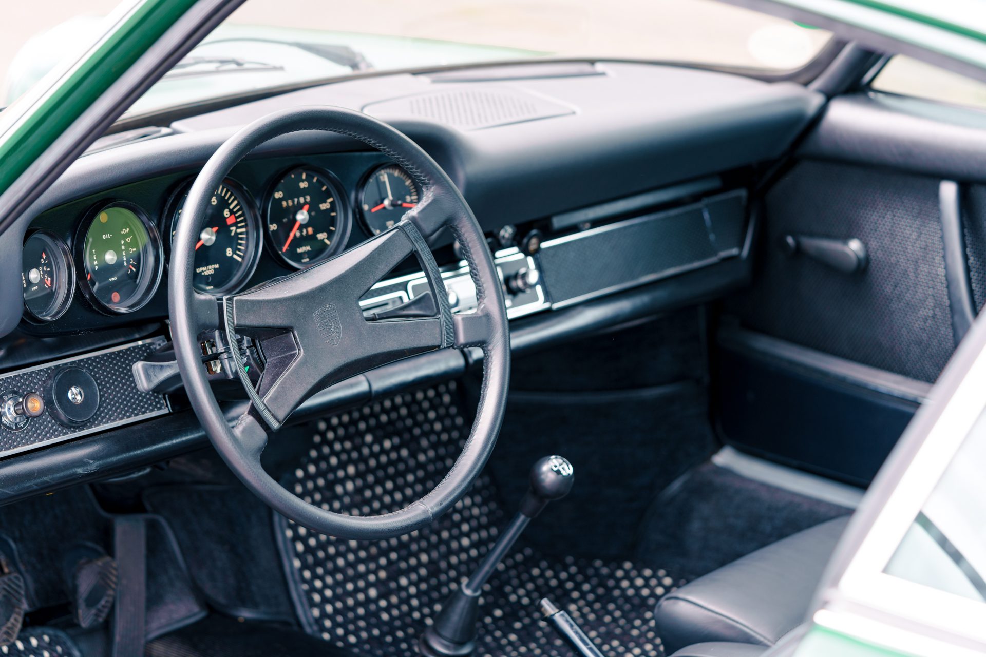 This eye-catching 911 T coupe left the Karmann plant on the 7th March 1969, finished in Irish Green with a leather interior, however a copy of the factory build records doesn’t list the interior colour. It was delivered to its first owner with a plethora of desirable options including a five-speed manual transmission, rubber bumpers (with horns front and rear), tinted glass, radio antenna and loud speaker, together with Koni shock absorbers.