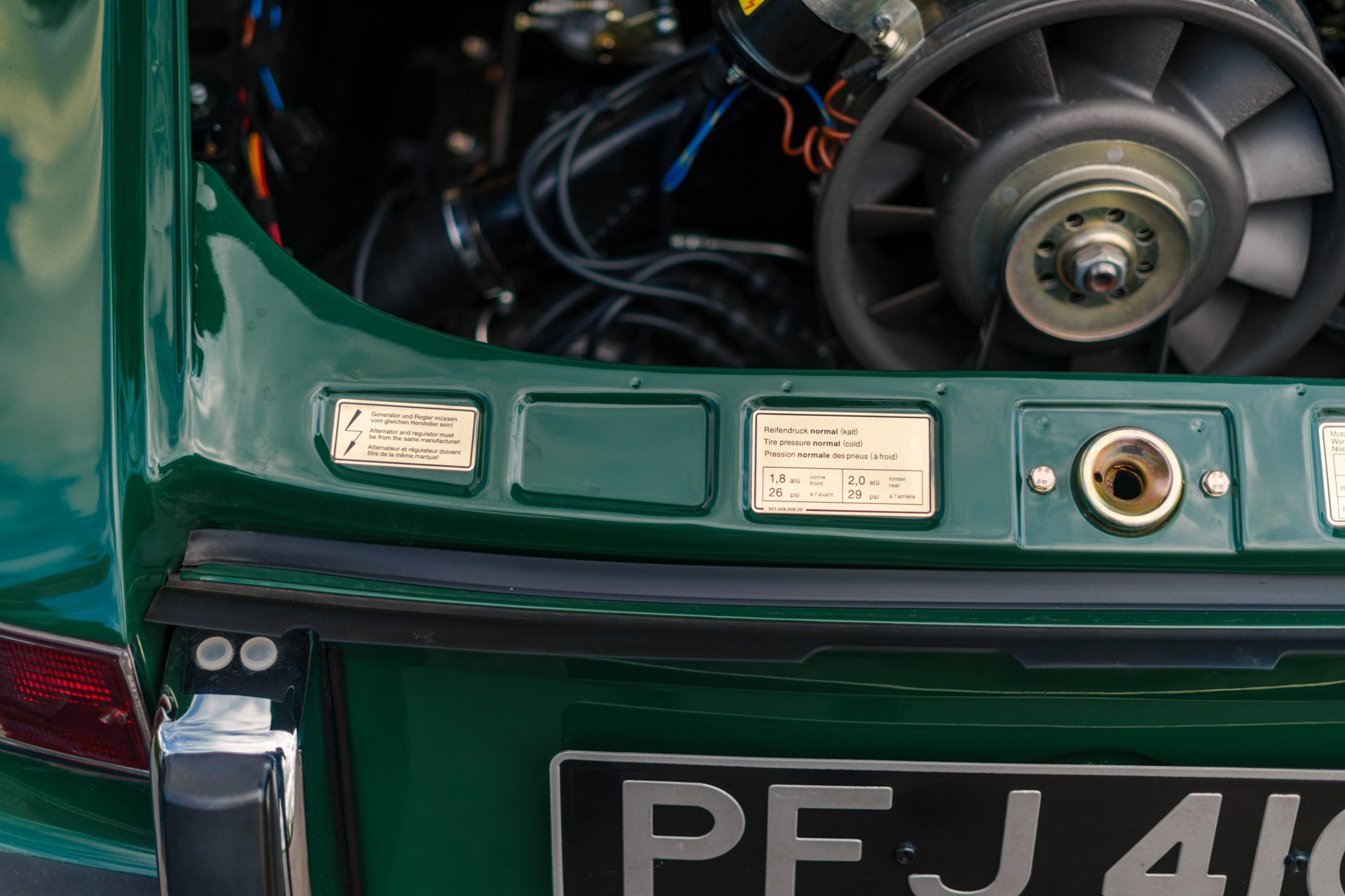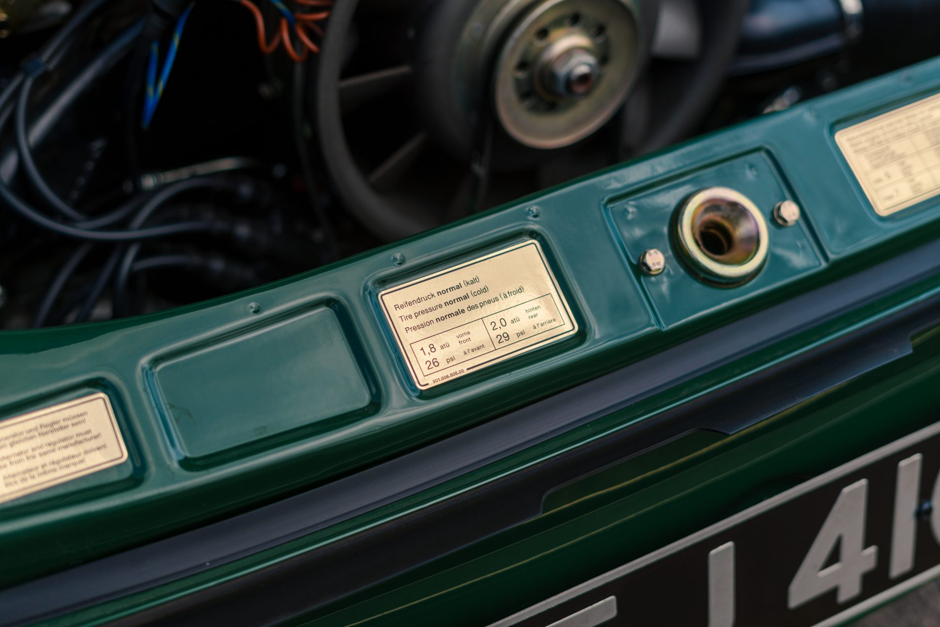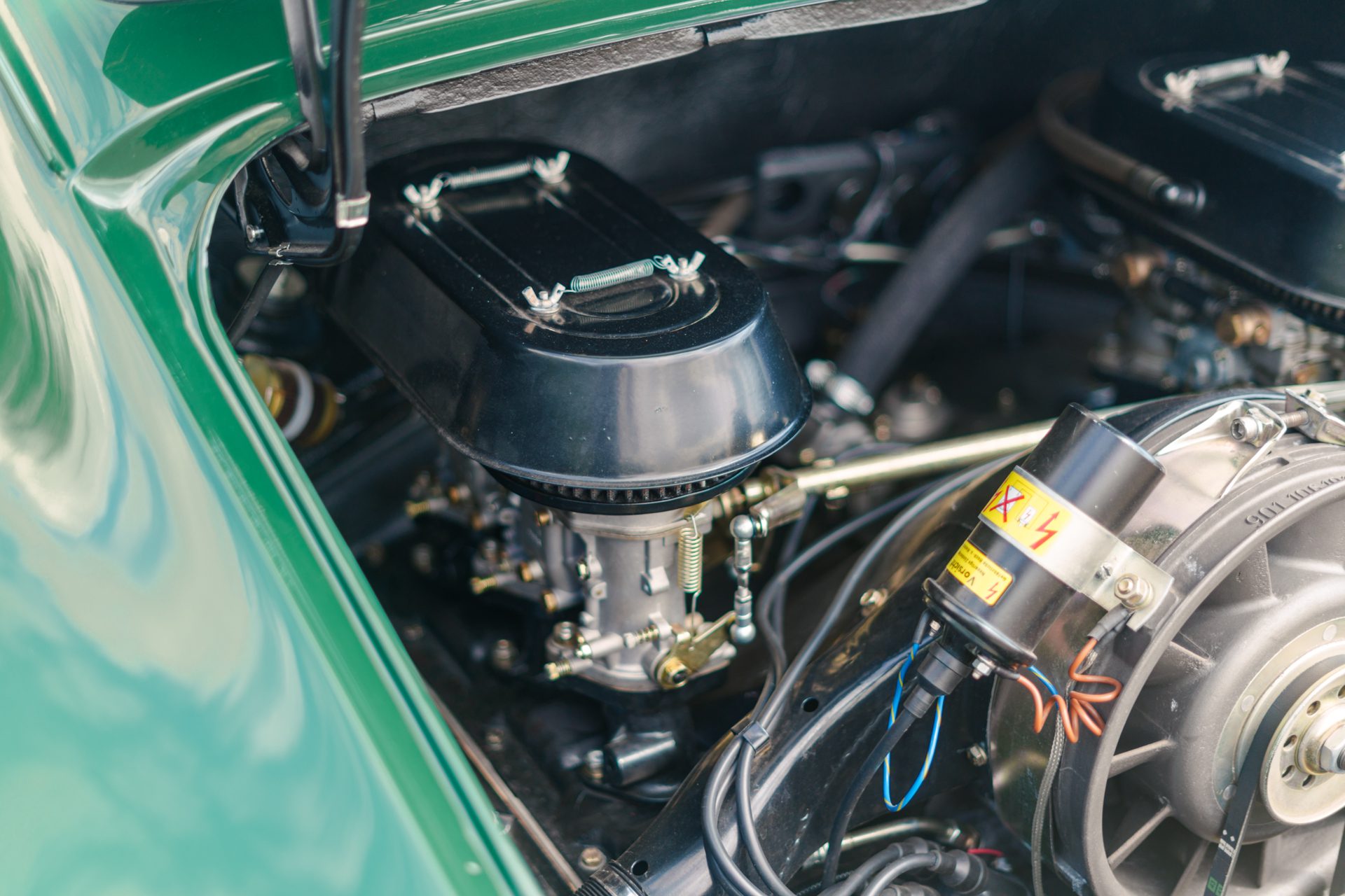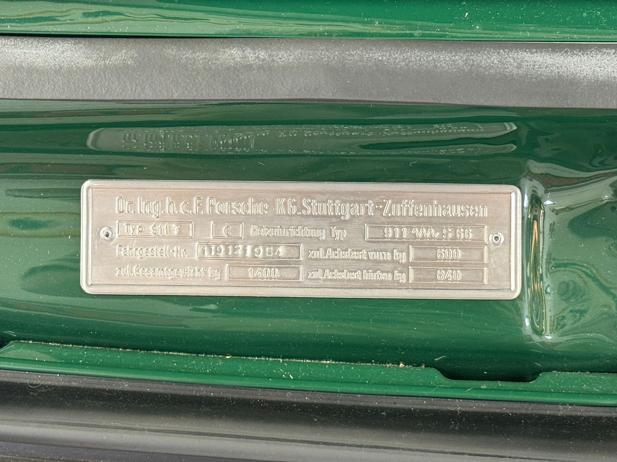 This eye-catching 911 T coupe left the Karmann plant on the 7th March 1969, finished in Irish Green with a leather interior, however a copy of the factory build records doesn’t list the interior colour. It was delivered to its first owner with a plethora of desirable options including a five-speed manual transmission, rubber bumpers (with horns front and rear), tinted glass, radio antenna and loud speaker, together with Koni shock absorbers.