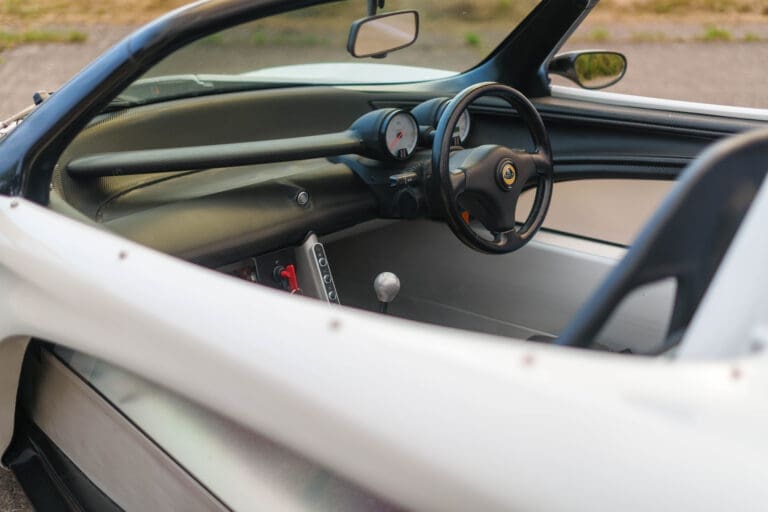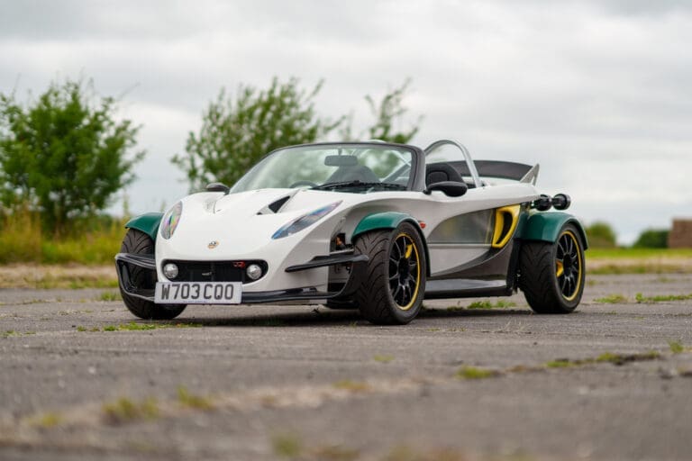Always looking to extend what was possible; the team at Lotus took their mantra even further, stripping off any “unnecessary” bodywork – such as the doors, roof and windows. What they created was exhibited as a concept for the 1998 British International Motor Show at the NEC in Birmingham, but such was the interest that the car eventually went into production as the 340R, selling out before any were even built. The designation was a reference to the power to weight ratio of 340 bhp/tonne – which the 500kg concept with its 177bhp 1.8-litre Rover K-series engine managed to surpass. By the time the limited edition run of 340 cars began in 2000, and despite looking like an Elise that had been comprehensively gutted, the 340R weighed in at 701kg (24kg lighter than the Elise itself).